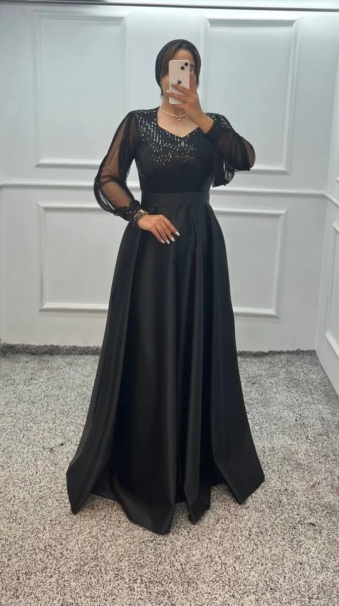 - **نوع:** لباس مجلسی بلند پولک دار و ساتن