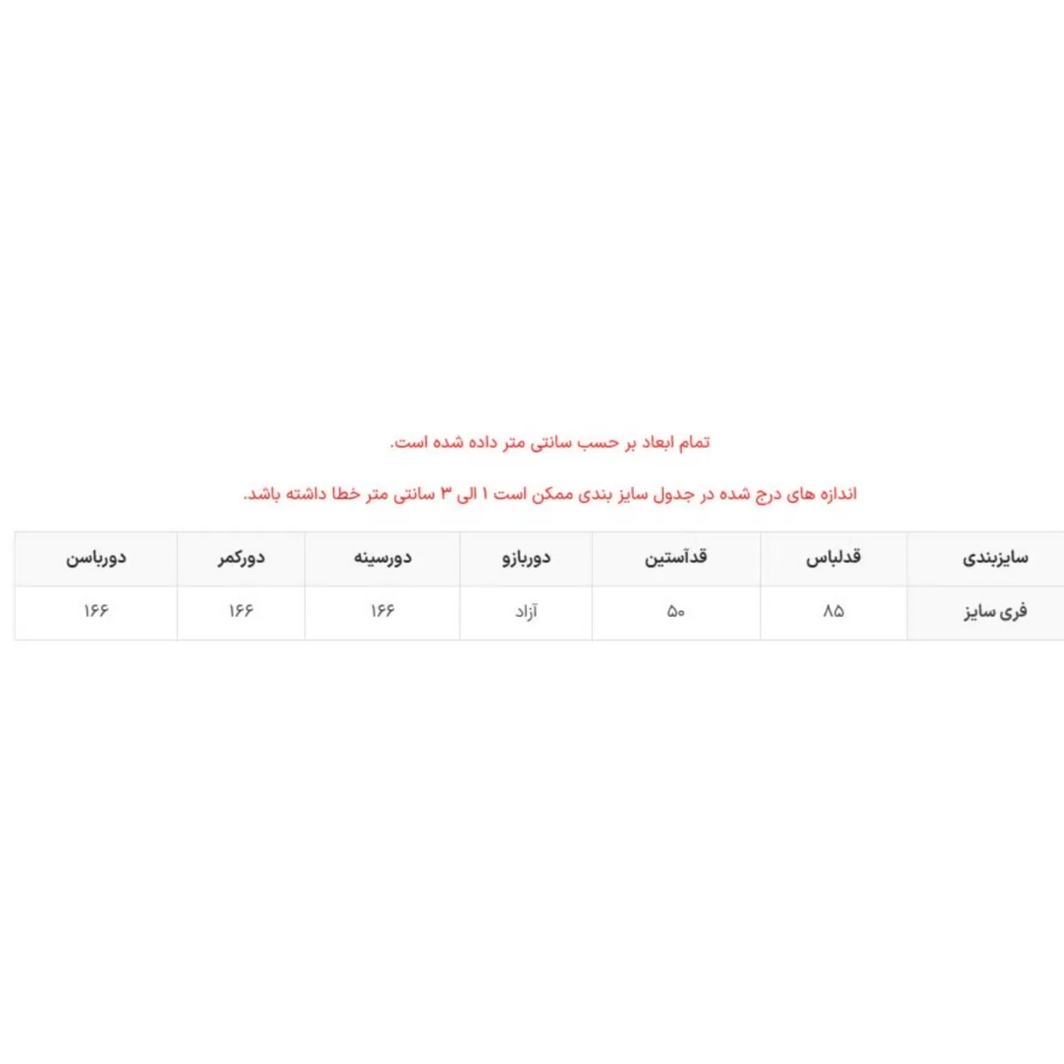 راستی برای انتخاب سایز مناسب خودت حتما جدول سایز بندی که همراه عکس محصول گذاشتم چک کن😉