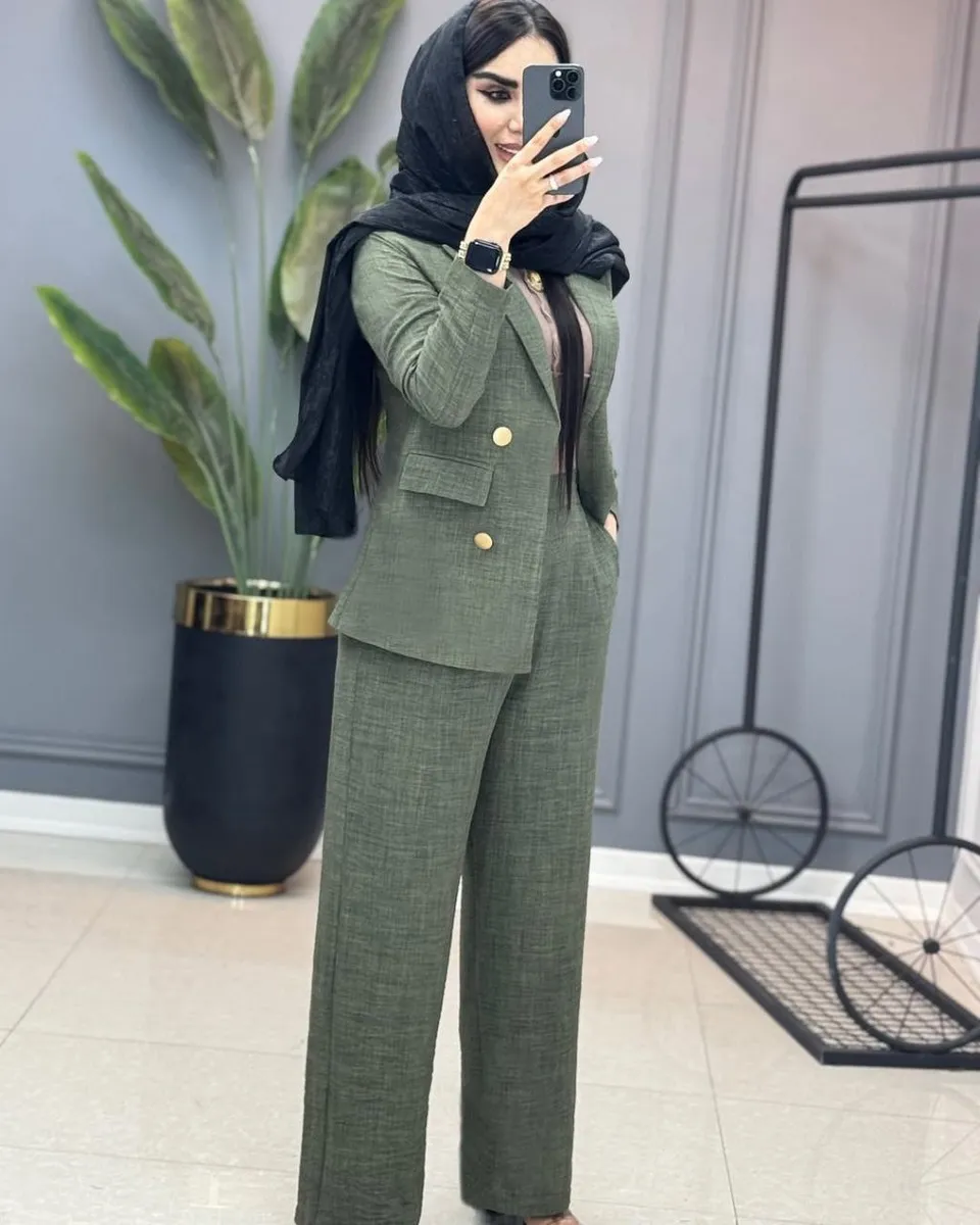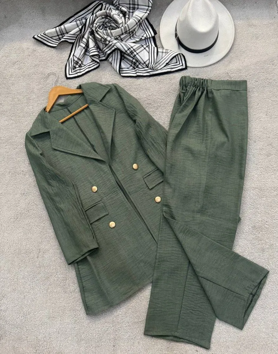 استایلی شیک و بیدردسر با ست کت و شلوار شانتون! این ست جذاب با پارچه شانتون خنک و سبک، بهترین انتخاب برای روزهای بهاری و تابستانی است. جلوی کت برای ایستایی بینقص، تماما لایهکوبی شده و شلوار در قسمت پشت کمر دارای کش است تا راحتی شما را در تمام طول روز تضمین کند. یک انتخاب هوشمندانه و کاربردی برای استایل روزمره، کاری و مهمانیهای شما که با ارسال فوری، سریع به دستتان میرسد.
