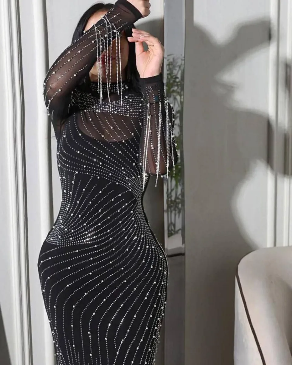 با پیراهن “نگین”، در هر مجلسی ستاره بیچونوچرای شب باشید. این لباس خیرهکننده، تماماً از تور لطیف مشکی ساخته شده و سرتاسر آن، از جلو تا پشت، با نگینهای شاین و درخشان پوشیده شده است. تلاقی رنگ مشکی عمیق با درخشش نقرهای نگینها، تضادی لوکس و چشمنواز ایجاد کرده که شما را در مرکز توجه قرار میدهد. این پیراهن یک انتخاب جسورانه و بینقص برای زنانی است که میخواهند در خاصترین لحظات زندگیشان، حضوری فراموشنشدنی داشته باشند.