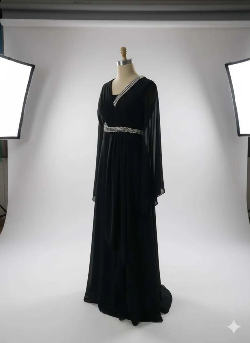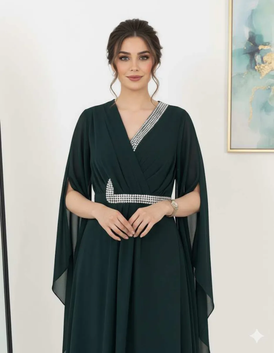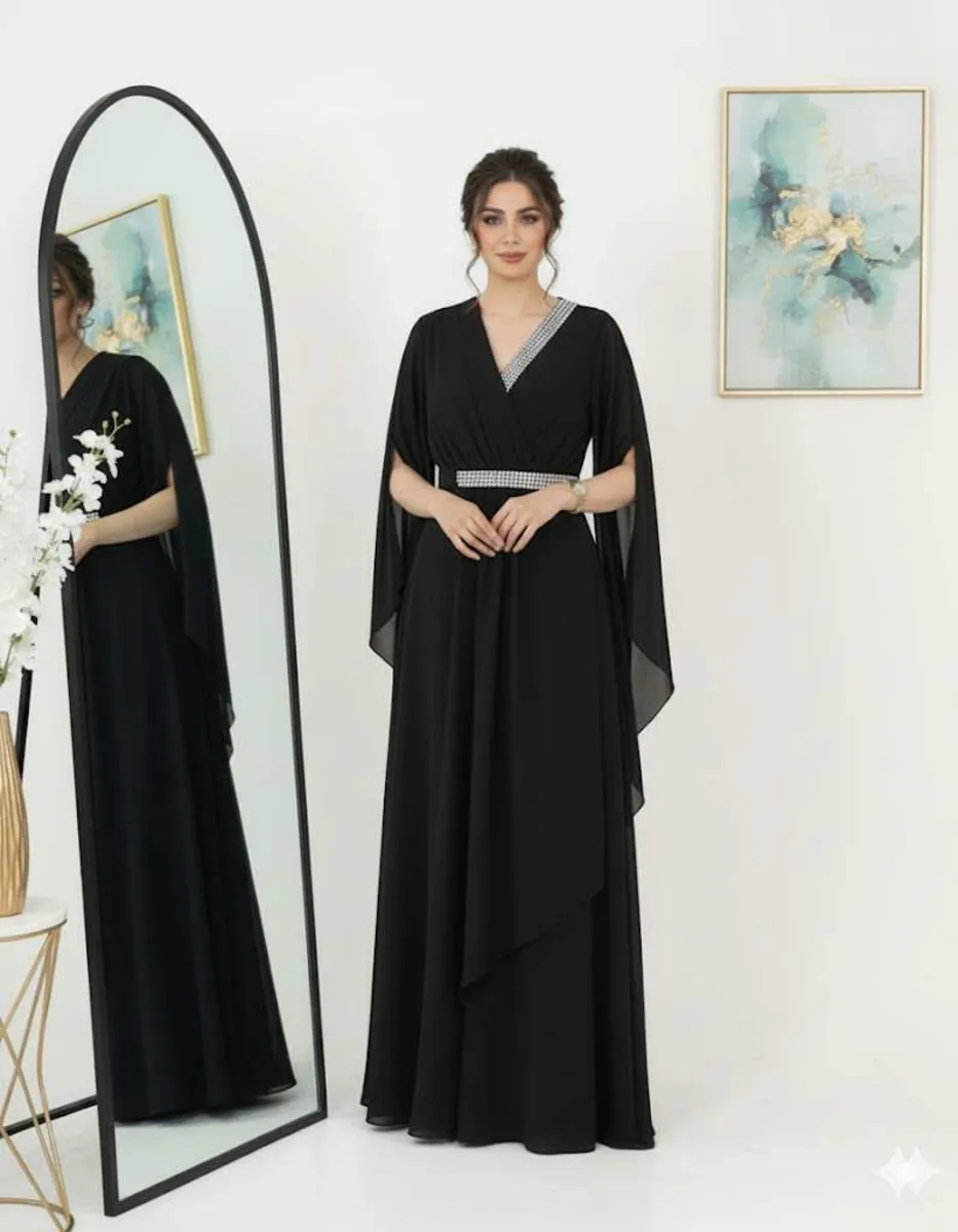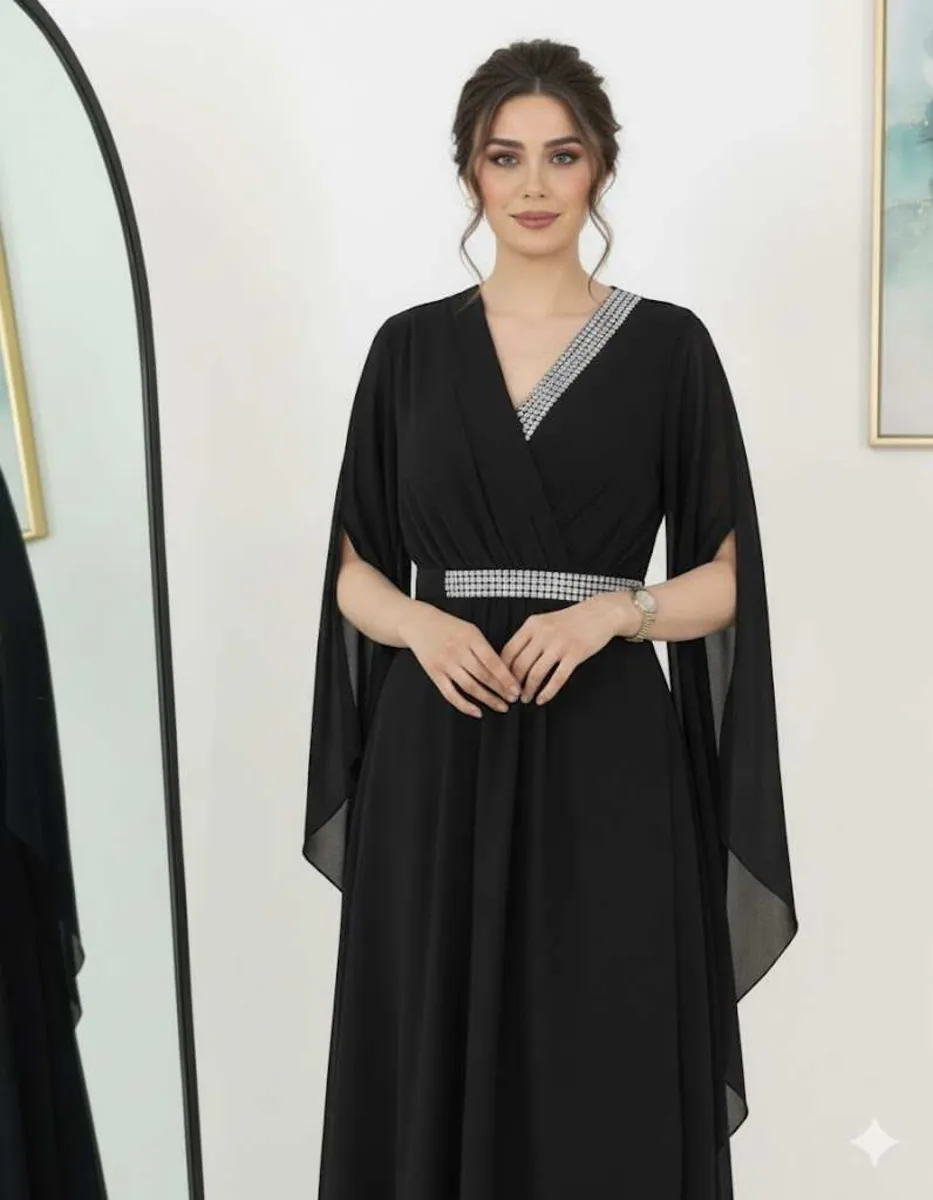 این پیراهن ماکسی باشکوه، با پارچه کرپ حریر لطیف و ریزشدار، به زیبایی روی اندام شما مینشیند و حسی از وقار و راحتی را به شما هدیه میدهد. سنگدوزیهای ظریف و هنرمندانهای که بر روی لباس کار شده، درخشش و جلوهای لوکس به استایل شما میبخشد.