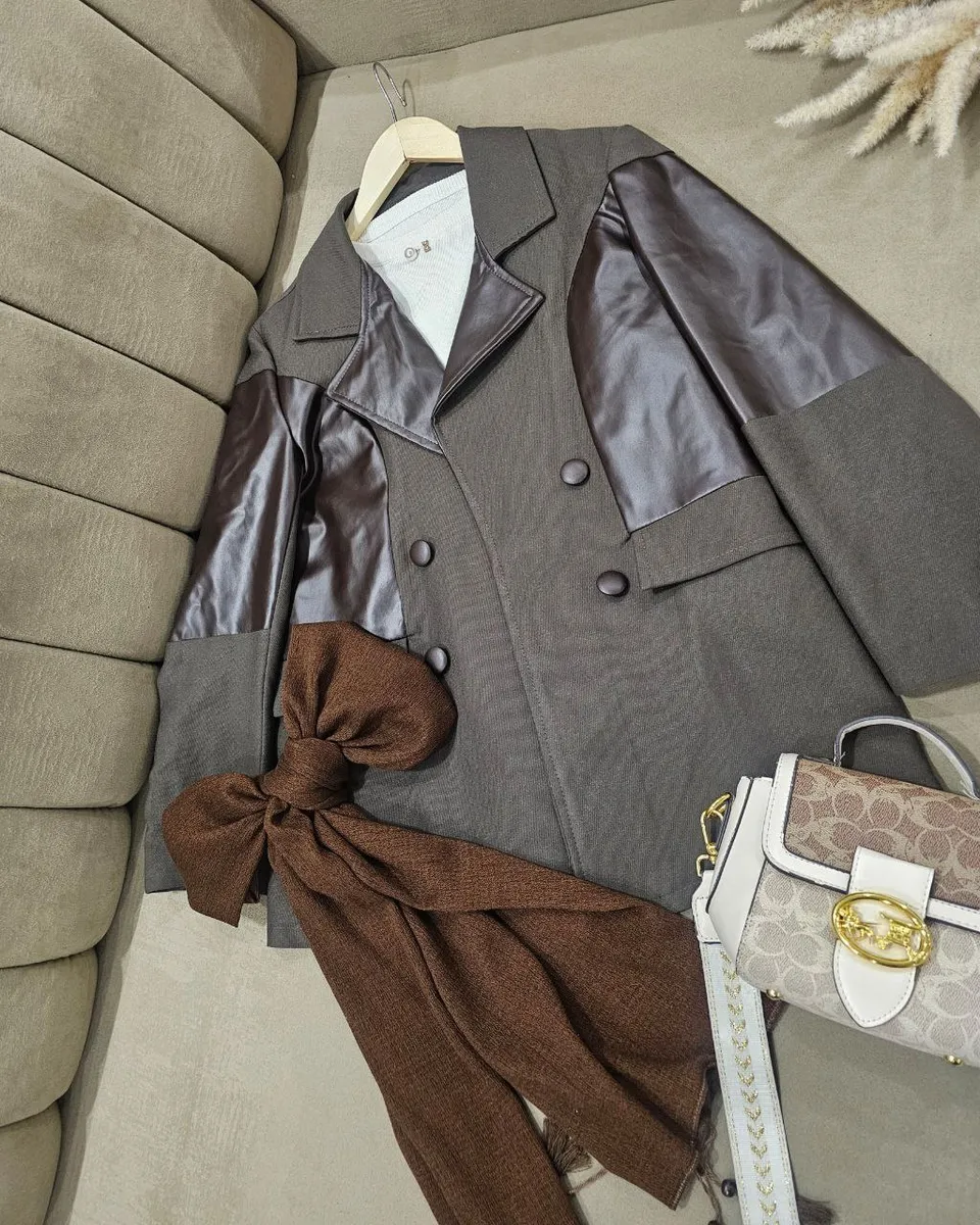 با مدل “رویا”، استایل پاییزی خود را بازتعریف کنید و در هر جمعی، مرکز توجه باشید. این کت، یک اثر هنری پوشیدنی است که با ترکیب هوشمندانه بافت غنی و کلاسیک پارچه توئیت جناقی با درخشش جسورانه چرم درجه یک، تعریفی جدید از اِلگانس و قدرت ارائه میدهد. طراحی منحصربهفرد آن، شما را از دیگران متمایز میکند و حسی از اعتمادبهنفس و لوکس بودن را به شما هدیه میدهد.