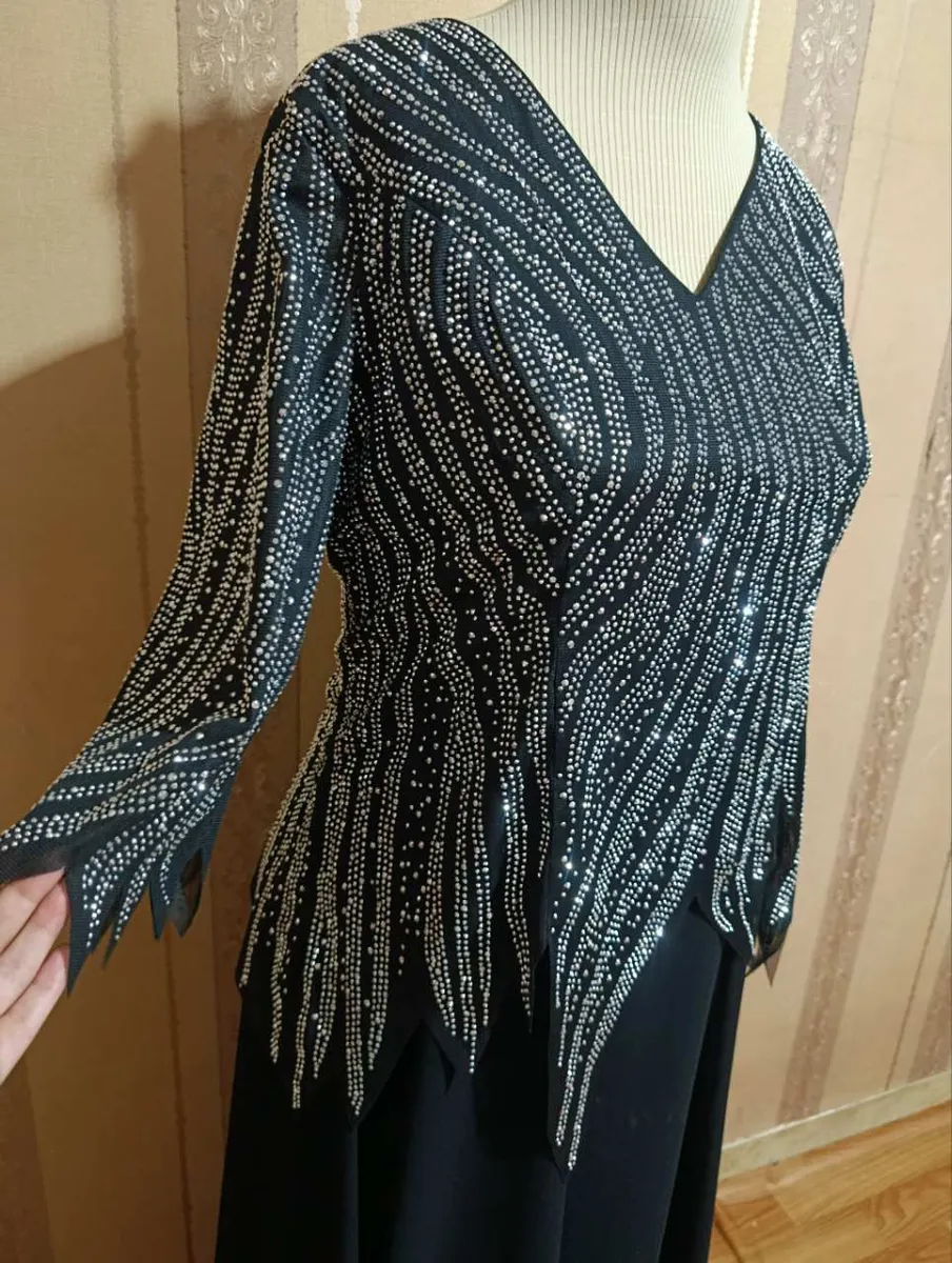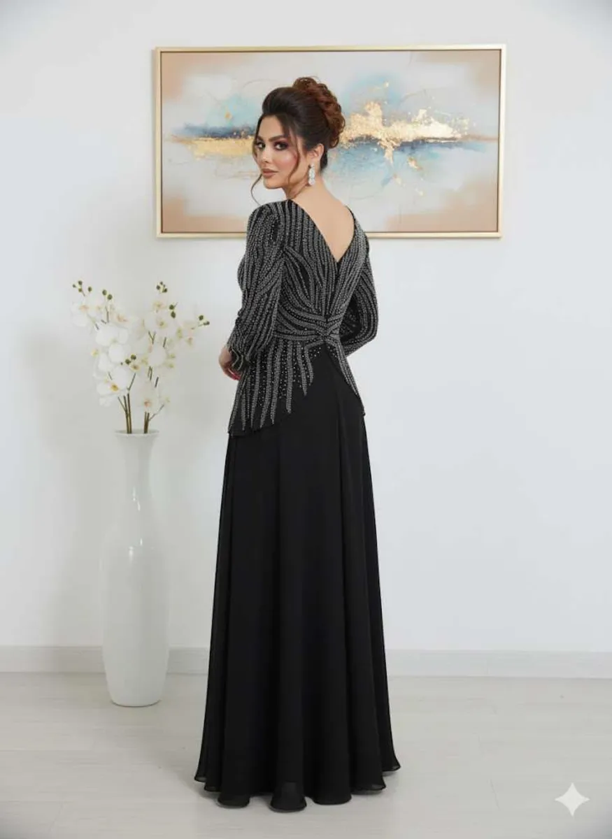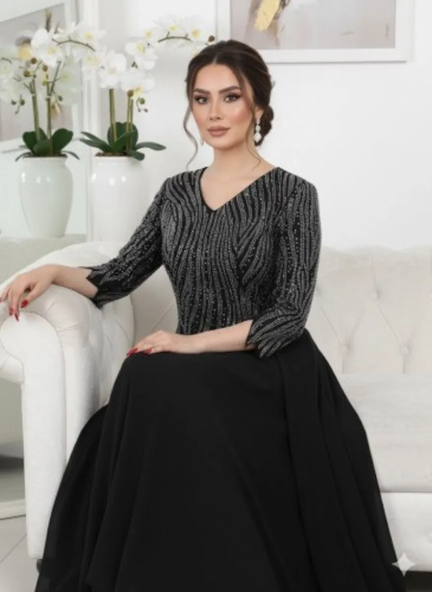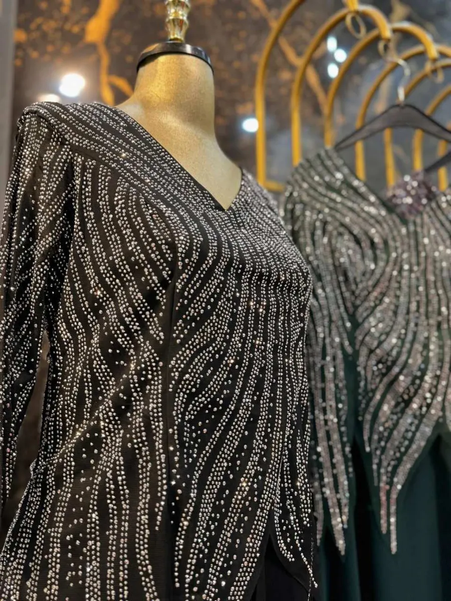 هنر واقعی این لباس، در آسمانی از نگینهای درخشان DMC است که با ظرافت تمام بر روی پارچه کار شده و تلالؤی چشمنواز و لوکسی به استایل شما میبخشد. ما کیفیت و ماندگاری این درخشش را با تضمین عدم ریزش نگینها به شما اطمینان میدهیم. رنگ مشکی عمیق و کلاسیک این ماکسی، زمینهای بینقص برای درخشش نگینها فراهم کرده و آن را به گزینهای ایدهآل برای مهمانیهای رسمی، مجالس عروسی و رویدادهای خاص تبدیل میکند. این پیراهن فقط یک لباس نیست؛ بلکه ابزاری برای نمایش اعتمادبهنفس و زیبایی منحصربهفرد شماست.