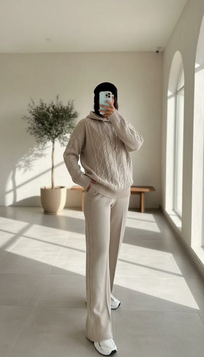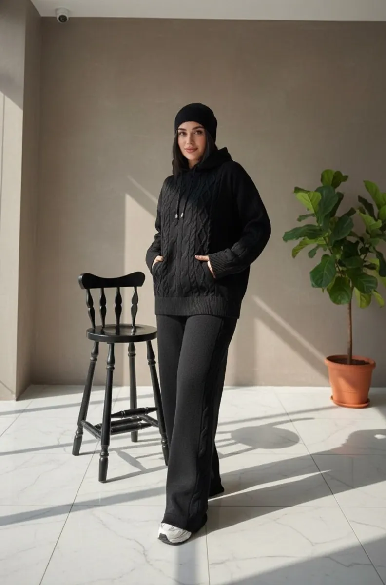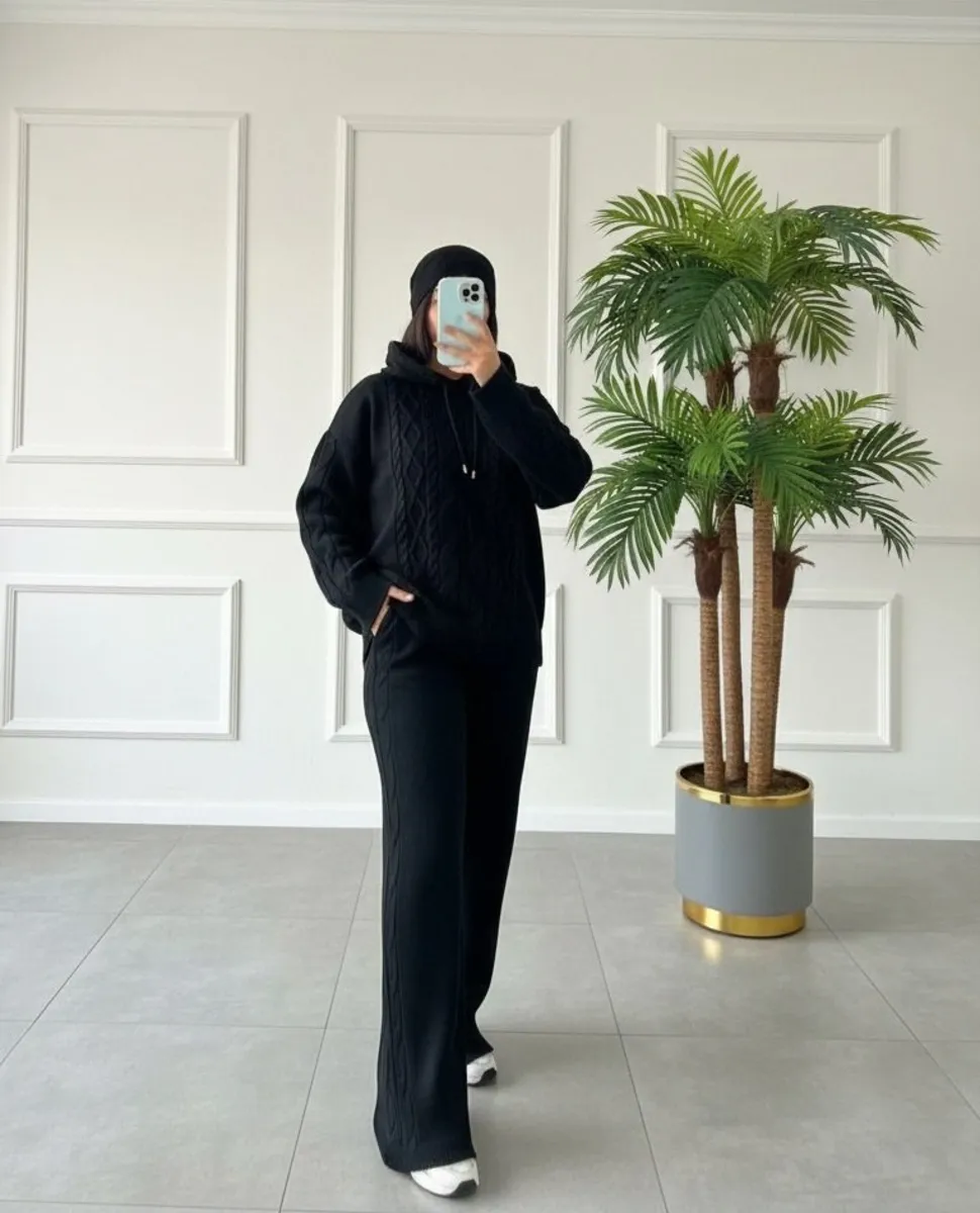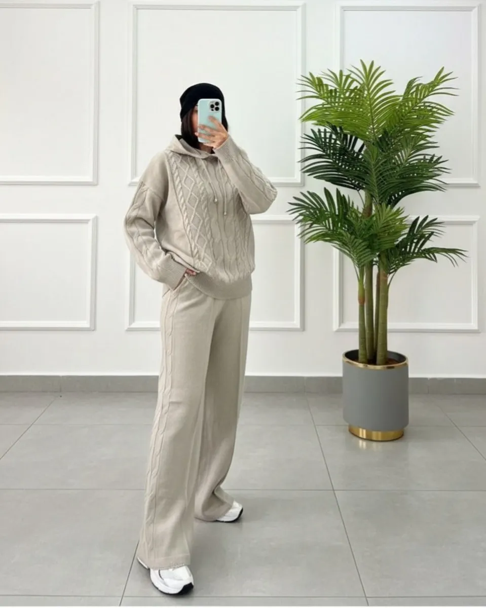 اگر به دنبال یک ست پاییزه شیک، گرم و راحت هستید، ست هودی و شلوار آران بهترین انتخاب برای روزهای خنک سال است. این ست از بافت باکیفیت تهیه شده و علاوه بر ظاهر جذاب، حس نرمی و لطافت بینظیری دارد.