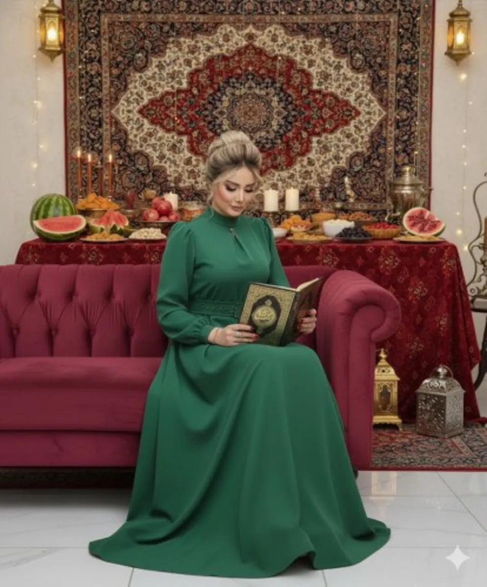 پیراهن بلند یلدایی ناز، دوختهشده با جنس مازراتی درجهیک و طراحی مزوندوز، انتخابی شیک و خاص برای جشن یلدا است. این مدل با کمربند نگینی جذاب، قد حدود 150 و سایزبندی کامل 38 تا 52 عرضه میشود. رنگهای سبز و قرمز آن، استایلی مجلسی و چشمگیر ایجاد میکند و کیفیت دوخت آن کاملاً تضمینی است.