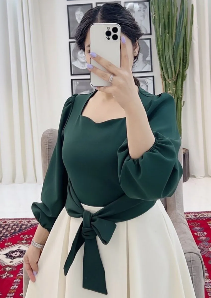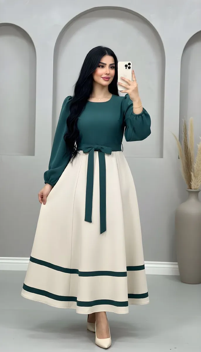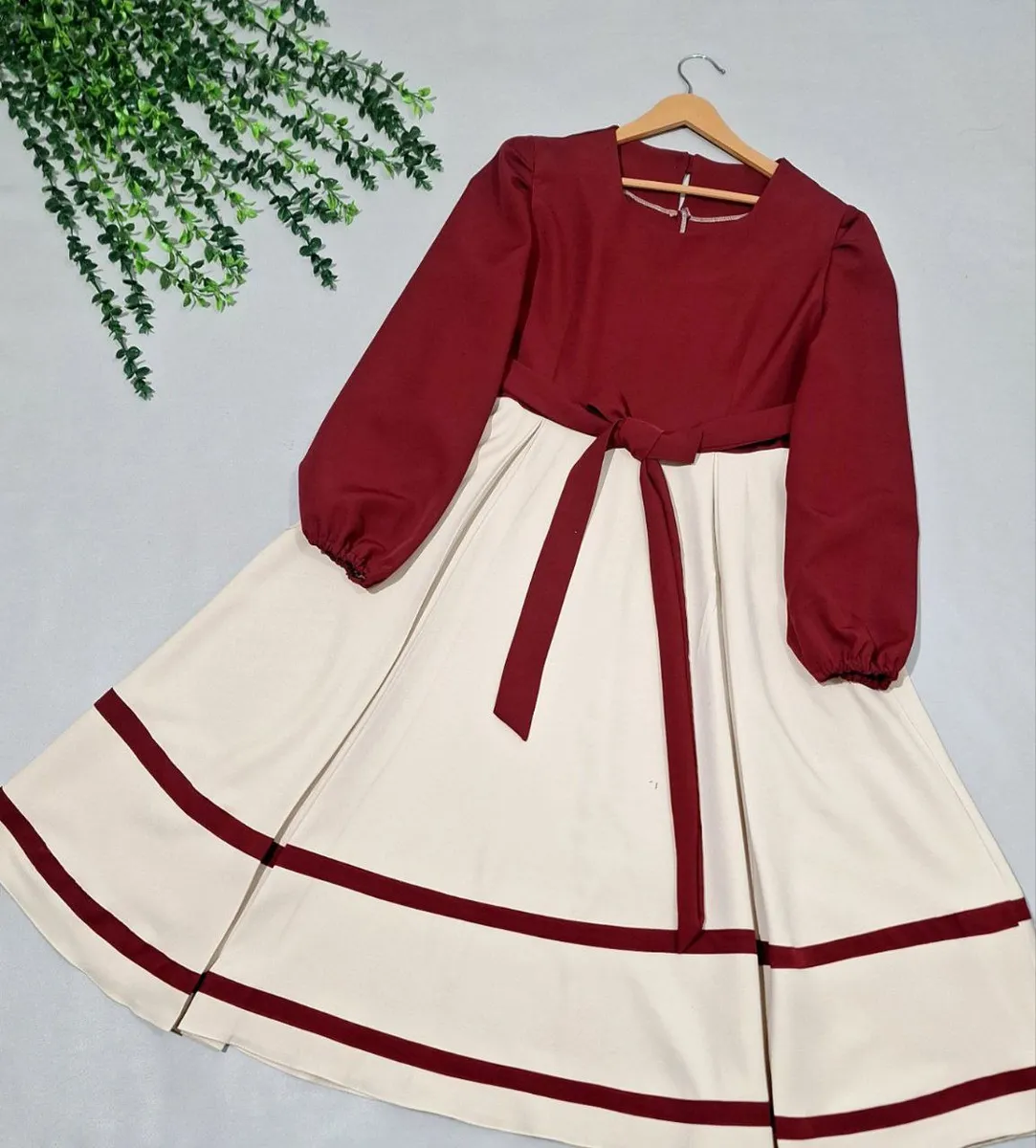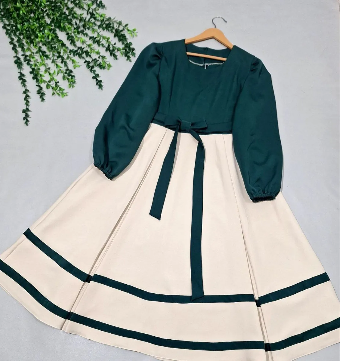 این مدل در رنگهای شیک و یلدایی زرشکی، سبز و سورمهای موجود است و گزینهای جذاب برای استایلهای رسمی و مجلسی محسوب میشود. نسخه قرمز/زرشکی این پیراهن با دامن کلوش برای تم یلدا فوقالعاده جلوه میکند و ظاهری خاص و مجلل ایجاد میکند.