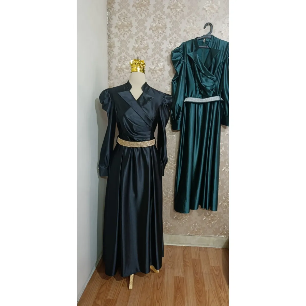 وجود کمربند جدا امکان تنظیم سایز و فرمدهی بهتر به کمر را فراهم کرده و باعث میشود پیراهن روی اندام کاملاً متناسب و جذاب دیده شود. رنگبندی شیک و کاربردی سبز و مشکی، این مدل را به انتخابی مناسب برای مراسم رسمی، جشنها و مناسبتهای خاص تبدیل میکند.