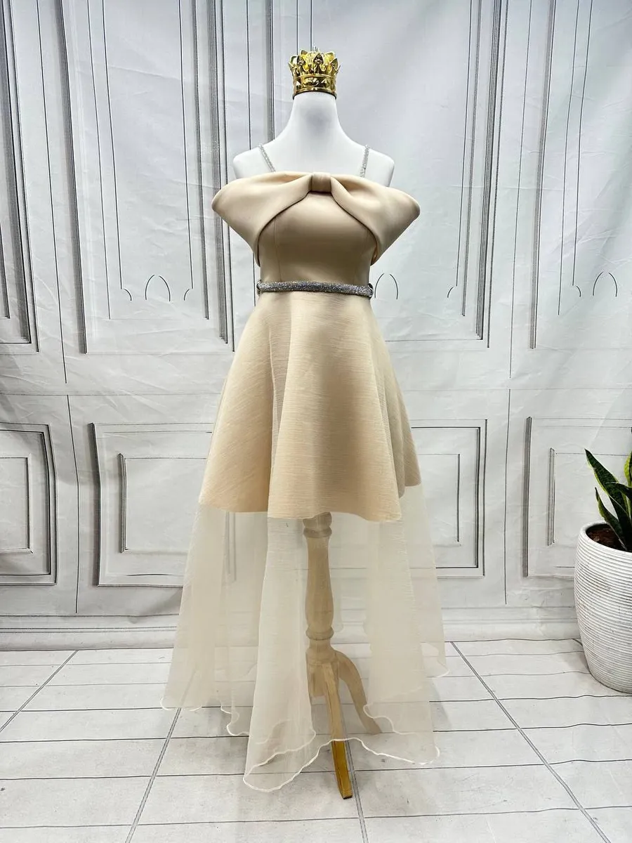 قد پیراهن حدود 85 سانت و قد دامن 90 سانت، تعادل ایدهآلی بین کوتاهی و پوشیدگی ایجاد کرده و امکان حرکت راحت در طول مراسم را فراهم میکند. رنگبندی متنوع شامل پاستیلی، سفید، قرمز و کرم، این پیراهن را به گزینهای جذاب و خوشاستایل برای مهمانیها و جشنهای رسمی تبدیل کرده است.