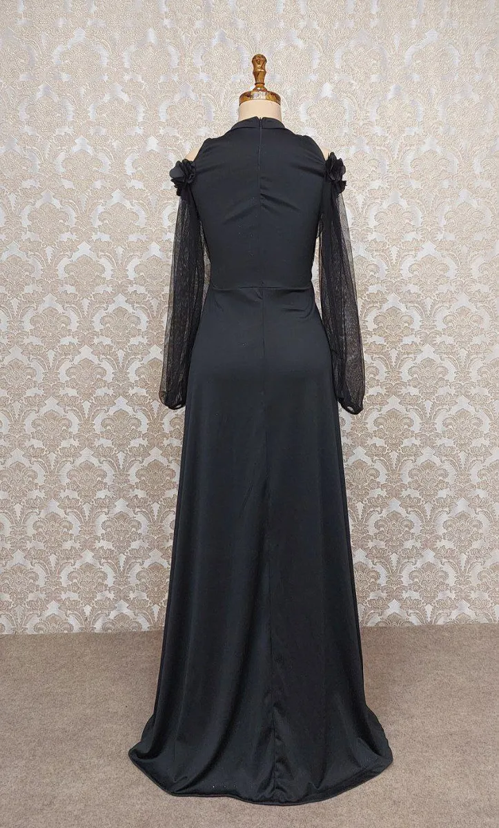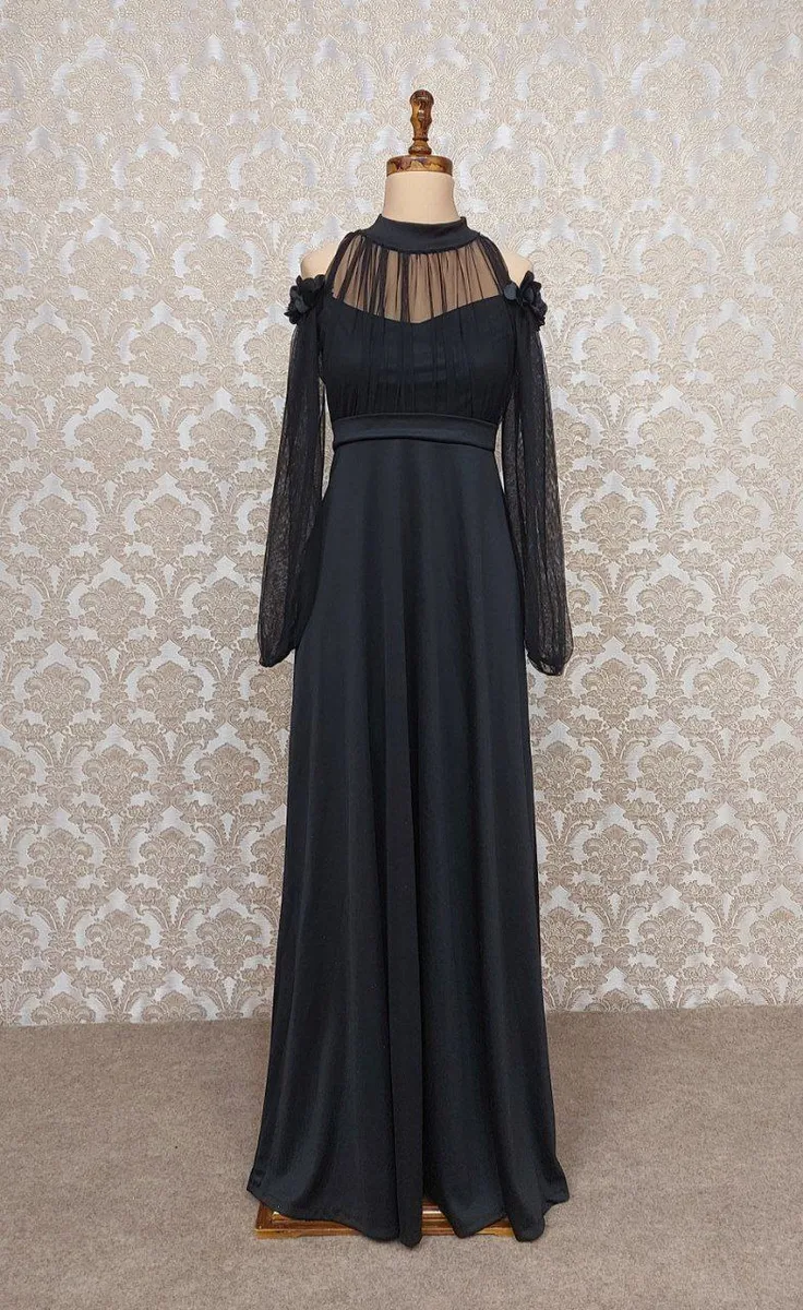 فرم لباس کاملاً اندامی و بلند (قد حدود 150 سانتیمتر) است و با زیپ مخفی پشت، تنخور تمیز و مزونی دارد. پارچه کرپکش موجب میشود لباس روی بدن خوشقواره بنشیند و به راحتی حرکتی طبیعی ایجاد کند، در حالیکه تور ظریف قسمت بالا یا آستین را با جلوهای لطیف و زنانه همراه میکند.