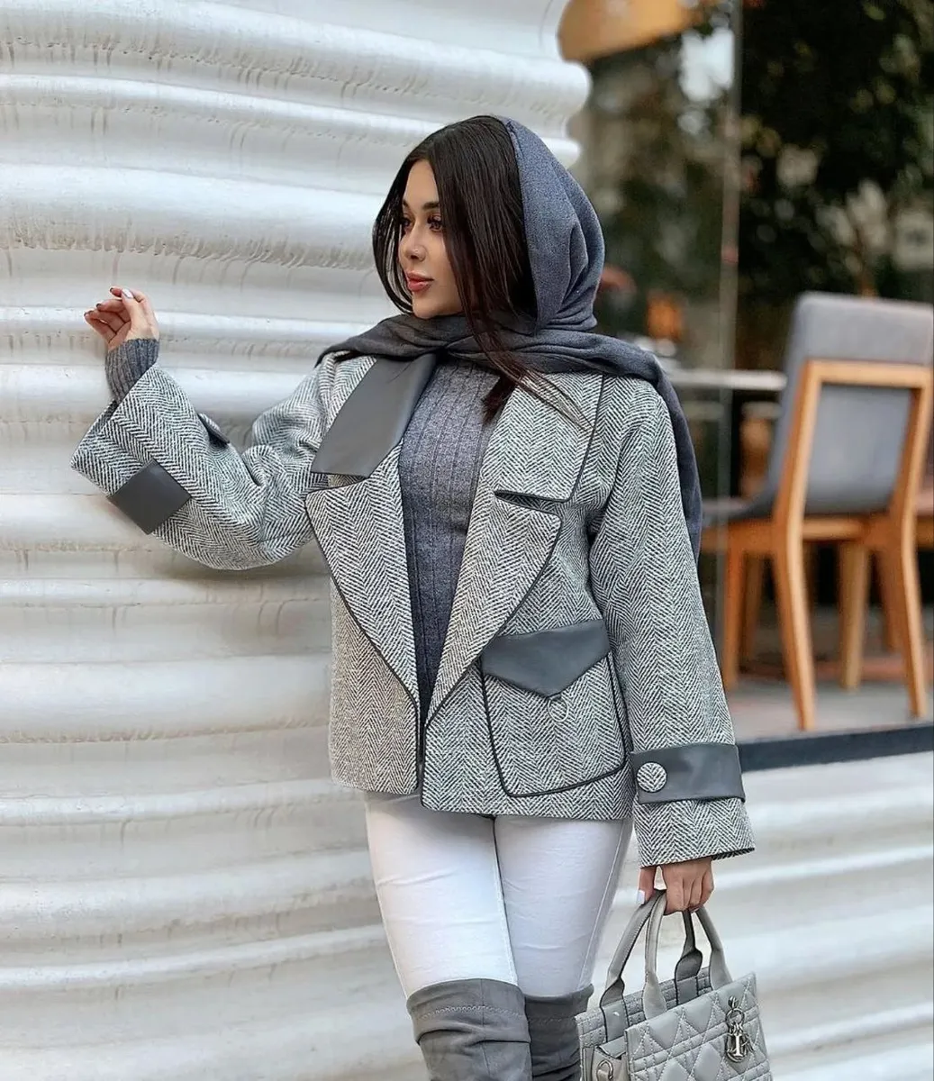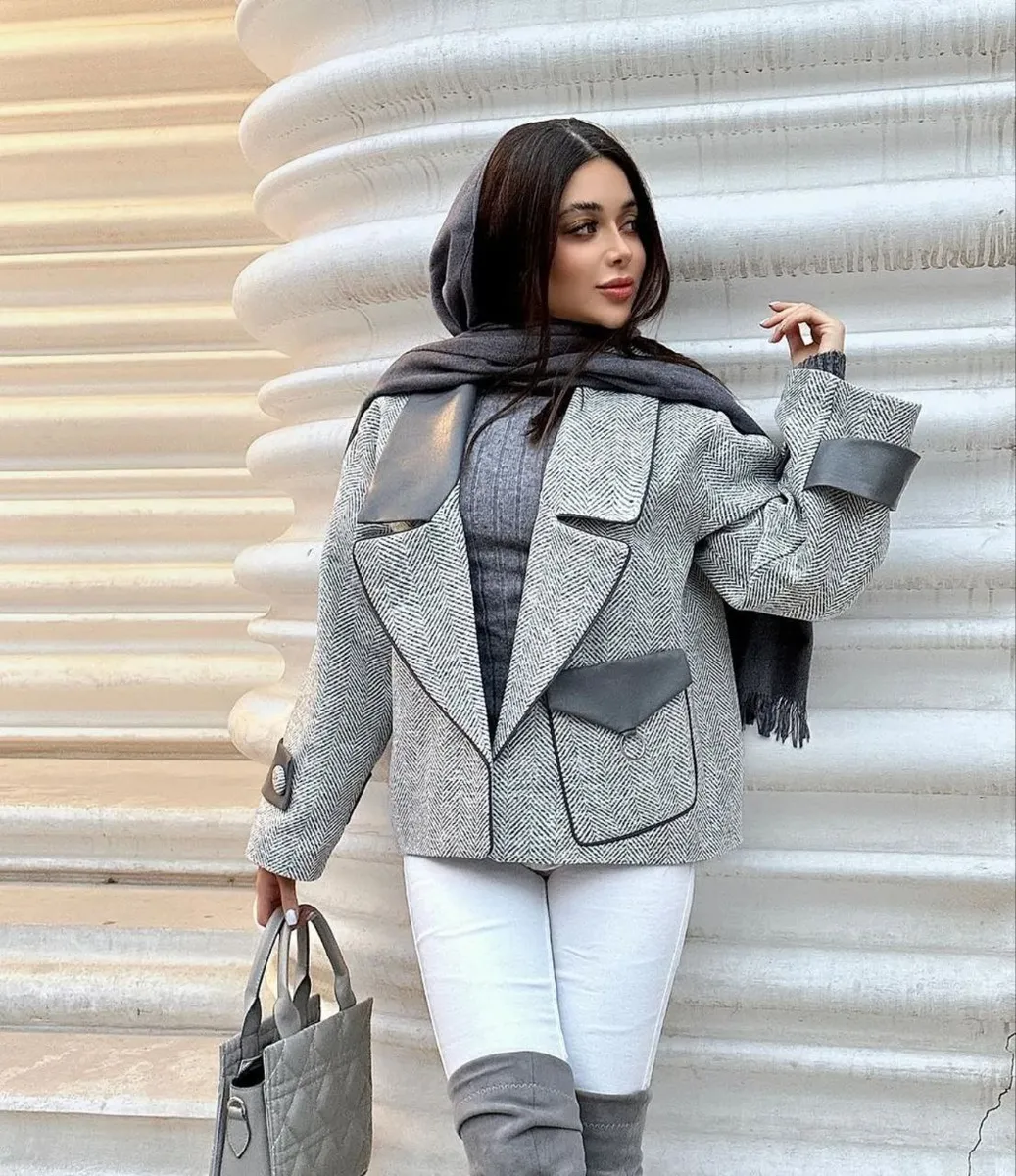 طراحی خاص این پالتو با خرجکار چرمی، یقه و سجاف مغزیدوزیشده و دوخت دقیق مزونی، تجمل و وقار رو در عین سادگی به استایلت میاره. ترکیب طوسی روشن جذاب با طرح جناقی مدرن باعث شده لباس، ظاهری ظریف ولی قدرتمند پیدا کنه.