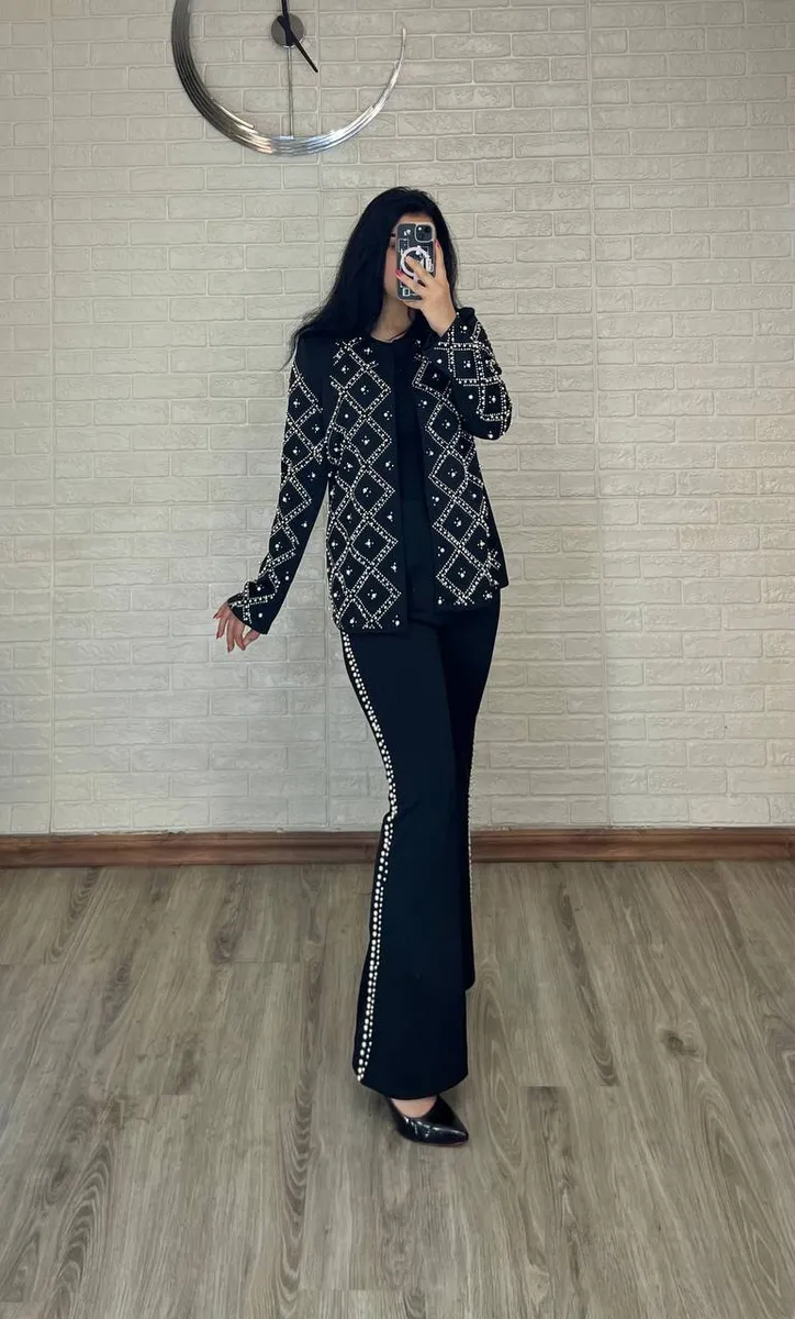 کت و شلوار تماما نگین دوزی و مرواریددوزی
