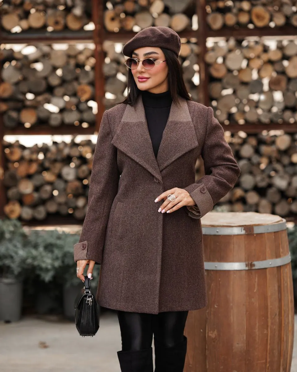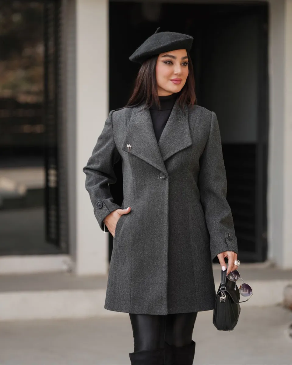 یقه **امریکایی کلاسیک**، مدل را بسیار شیک، مجلسی و مناسب استایل رسمی و روزمره میکند. این مدل کوتاه و خوشفرم است و برای خانمهایی که دنبال پالتوی سبک، خوشاستایل و کاملاً خوشدوخت هستند، انتخابی فوقالعاده محسوب میشود.