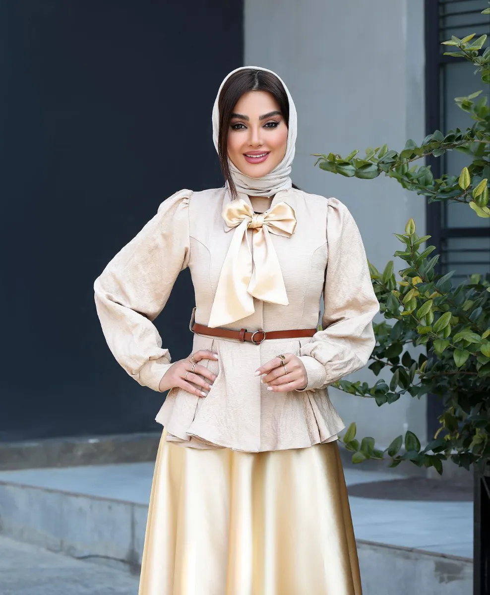 ست مجلسی شیک «ژینوس» یک کار 4 تیکه فوقالعاده لاکچری و متفاوت است که شامل **کت، دامن، کروات و کمربند چرمی** میشود. این ست با ترکیب جذاب **کتان لَمِه** و **ساتن LX** دوخته شده؛ پارچههایی که هم جلوه رسمی و مجلسی دارند و هم روی تن بسیار زیبا و مزونی میایستند.