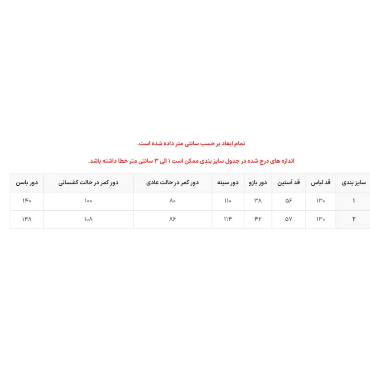 راستی برای انتخاب سایز مناسب خودت حتما جدول سایز بندی که همراه عکس محصول گذاشتم چک کن😉