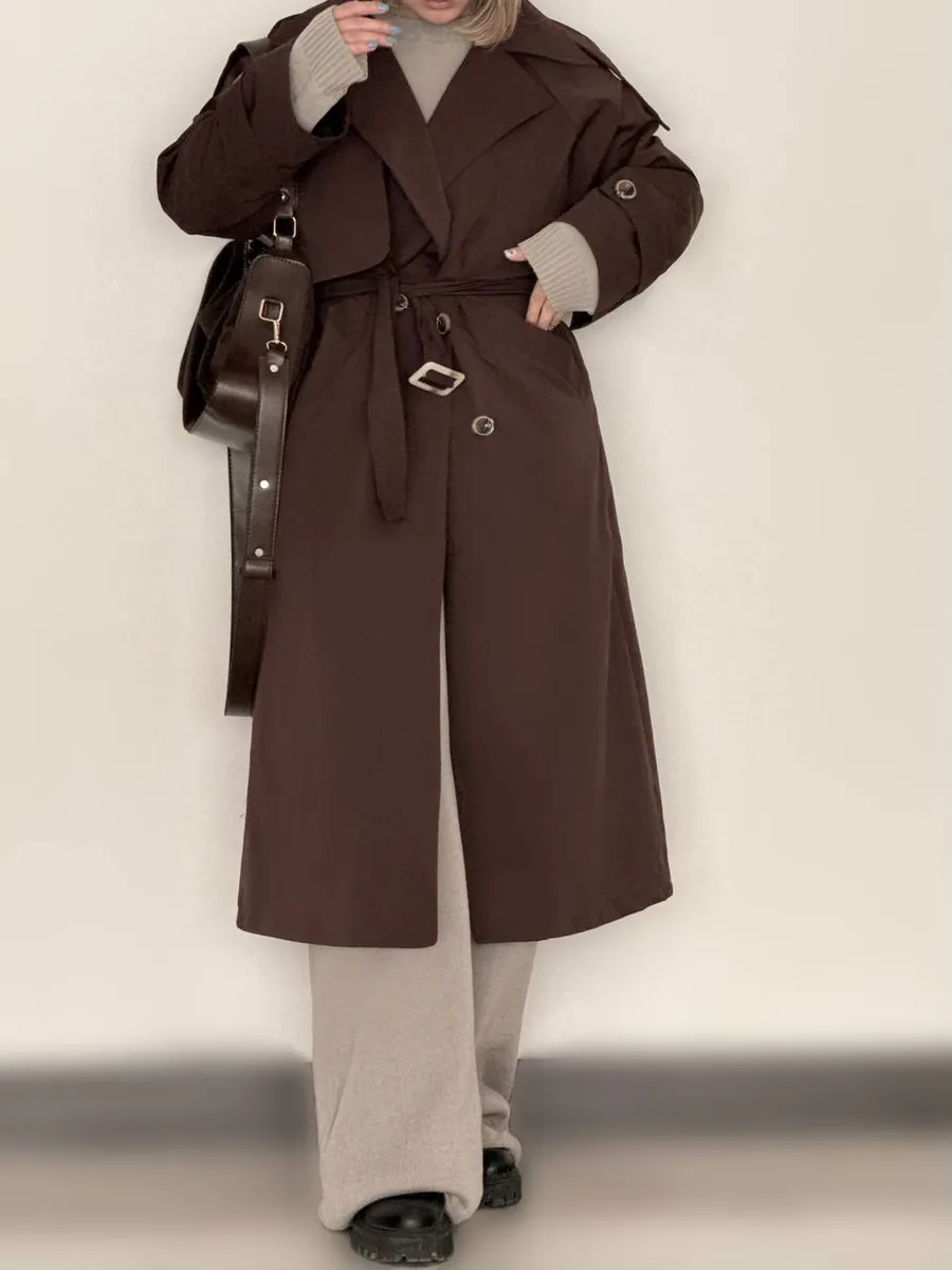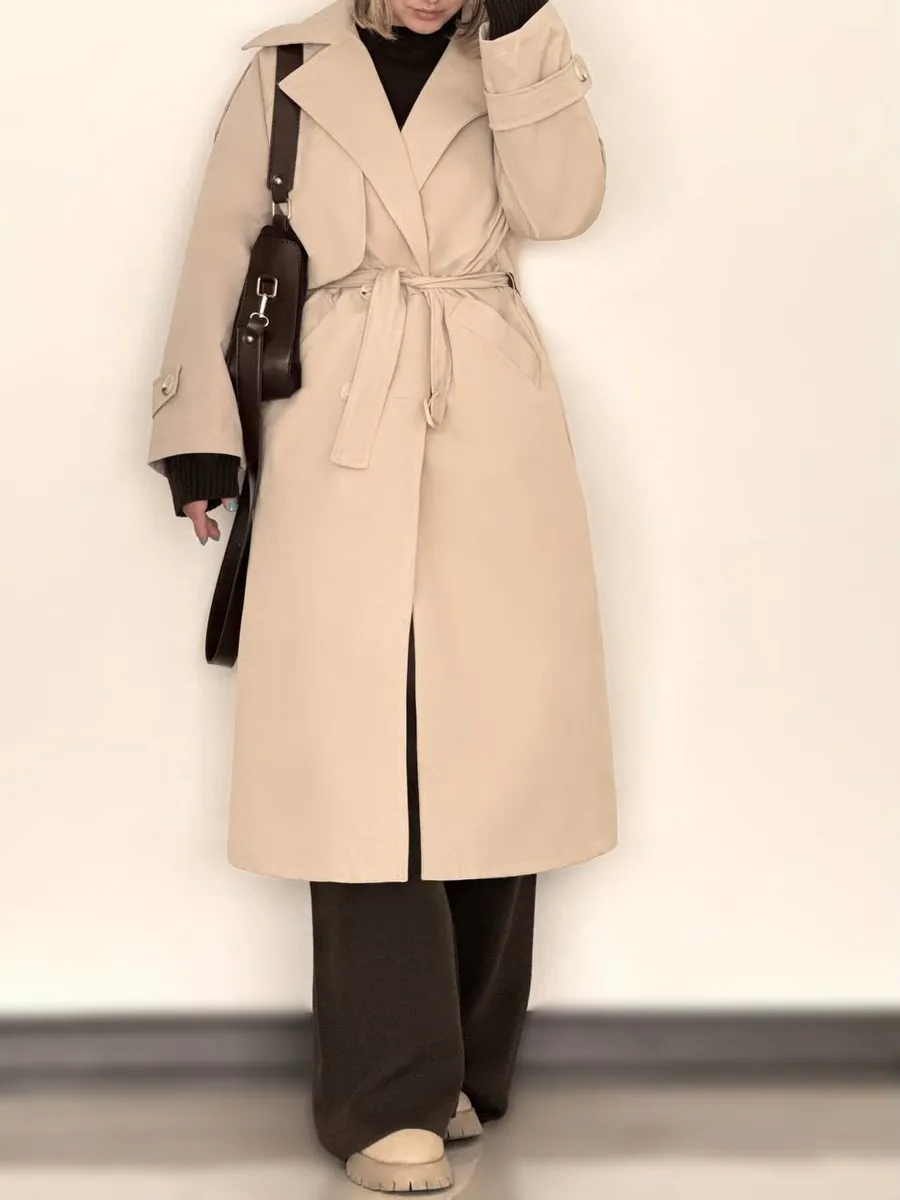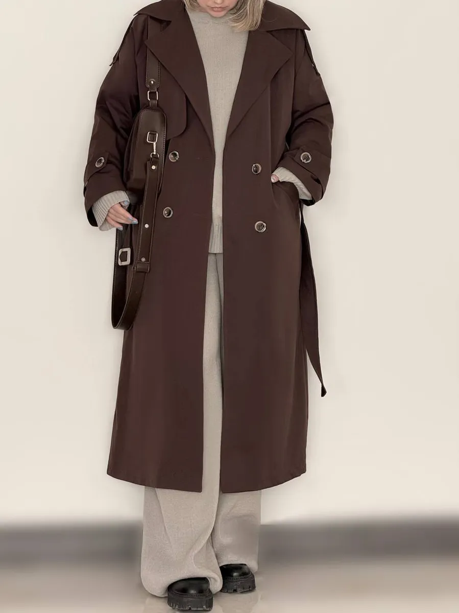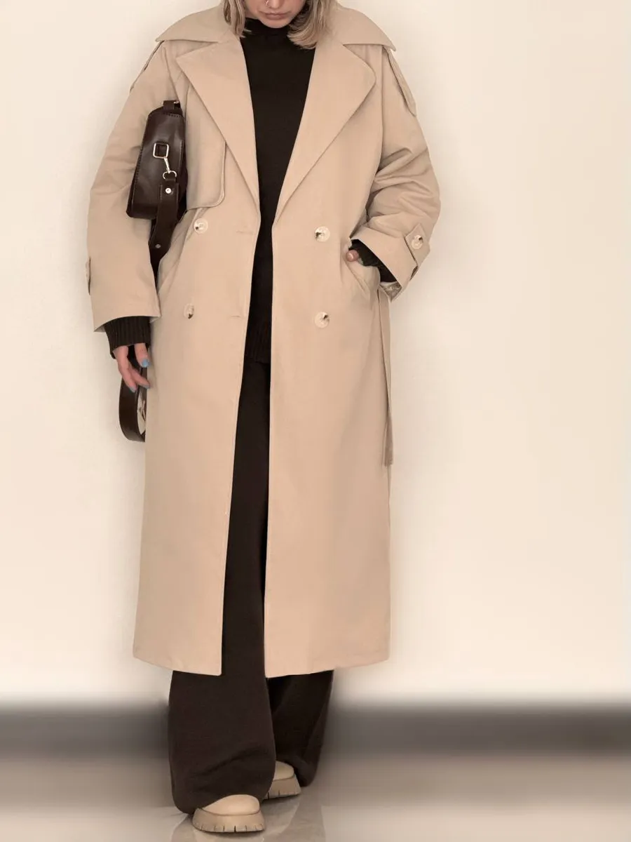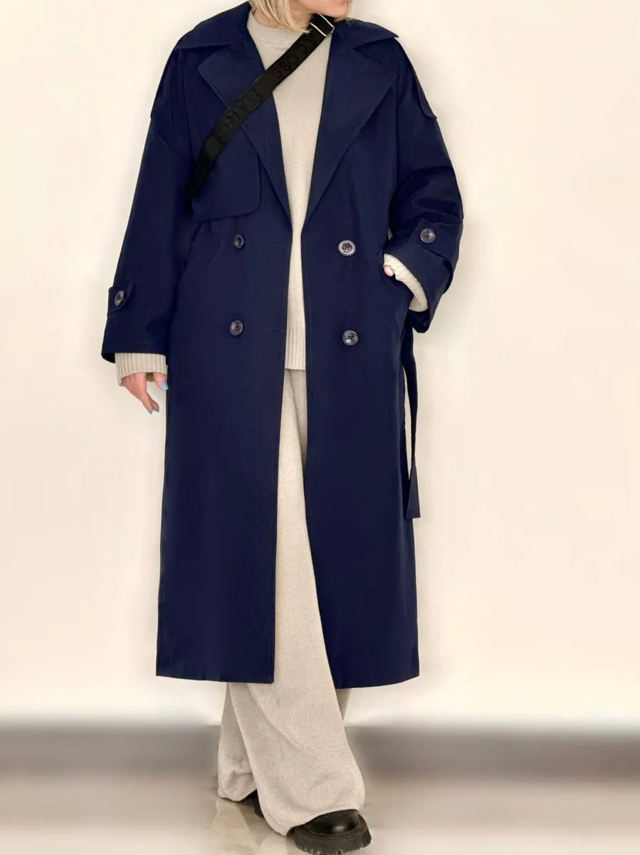 این ترنچ با طراحی **فریسایز** تولید شده و الگوی آن طوری اصلاح شده که روی سایزهای مختلف بدن تنخور بسیار مرتب، شیک و تمیز داشته باشد. بهطور دقیق، اندازههای محصول به این صورت هستند:
