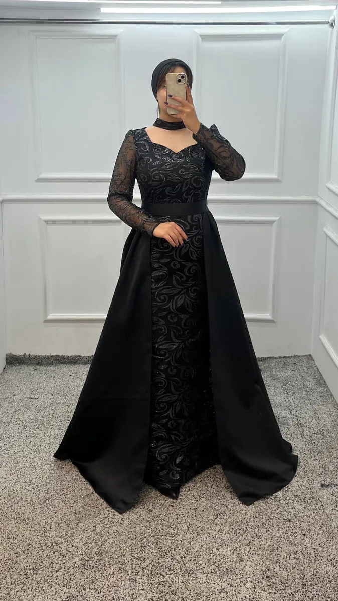 لباس مجلسی ماکسی «سودی» یک مدل فوقالعاده شیک، مشکی و کاملاً مجلسی است که با ترکیب لوکس **پولک تورشاین طرحدار** و **ساتن آمریکایی درجهیک** دوخته شده. بالاتنه پولکی برق خاص و مزونی دارد و دامن **دو دامنهای کلوش** حالت پرنسسی، شیک و بسیار چشمگیر ایجاد میکند؛ مناسب جشنهای شب، عروسی، نامزدی، تولد و مراسم رسمی.
