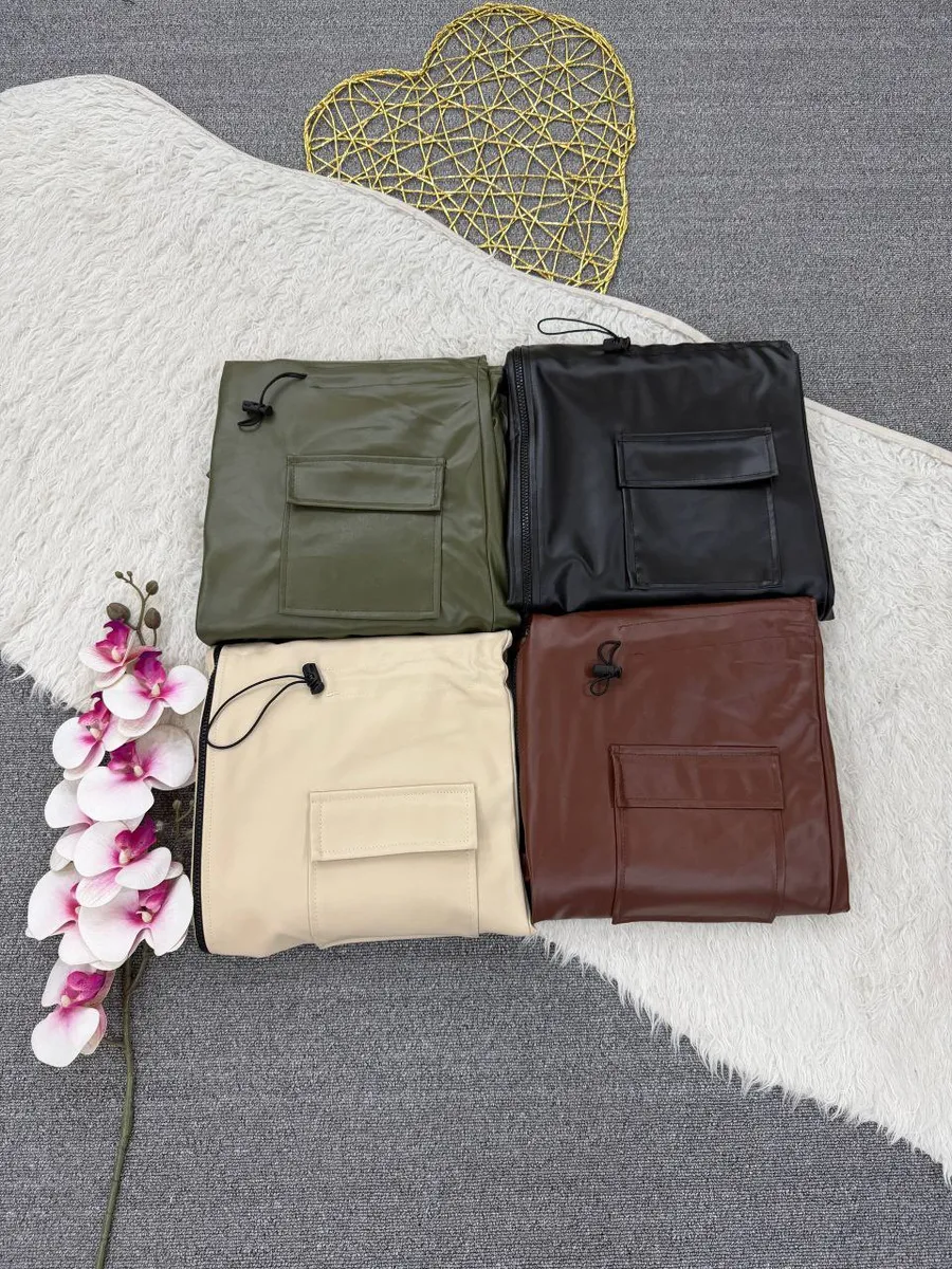 دارای **دو جیب کاربردی** و کیفیت دوخت عالی در چهار رنگ محبوب: **سبز، قهوهای، کرم، مشکی**.