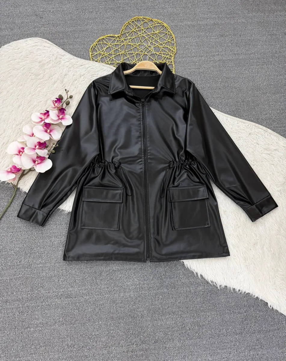 طراحی کار بهصورت **کمر گتدار** است تا فرم بدن را جمعوجور و استایل را ظریفتر نشان دهد. تنخور کت مدرن، تمیز و مناسب استایلهای روزمره، خیابانی و مهمانیهای اسپرت–شیک است.