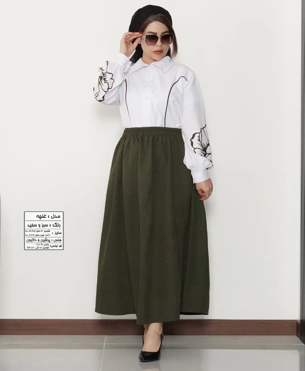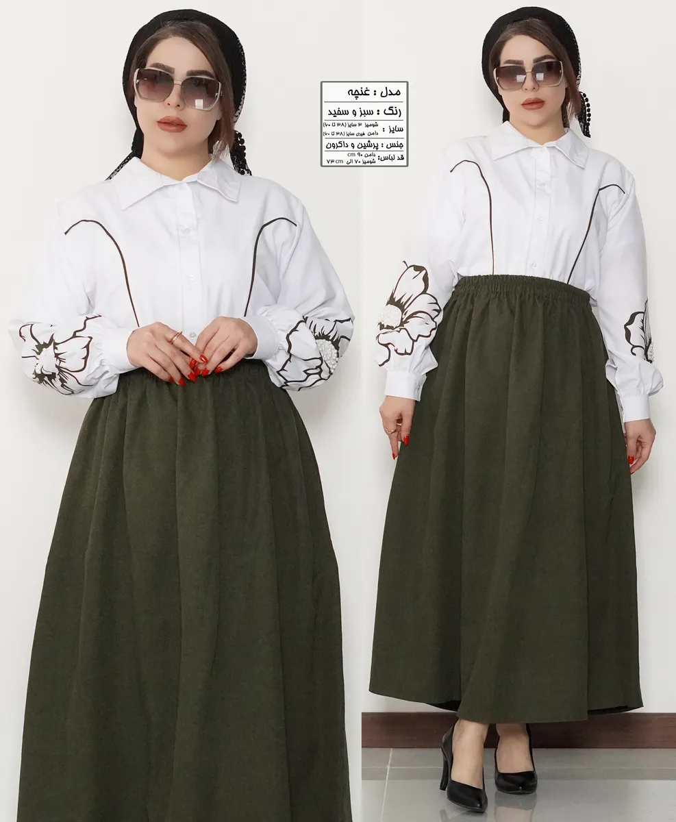 جلو و مچی شومیز دکمه دارد / دامن کامل کمرکش