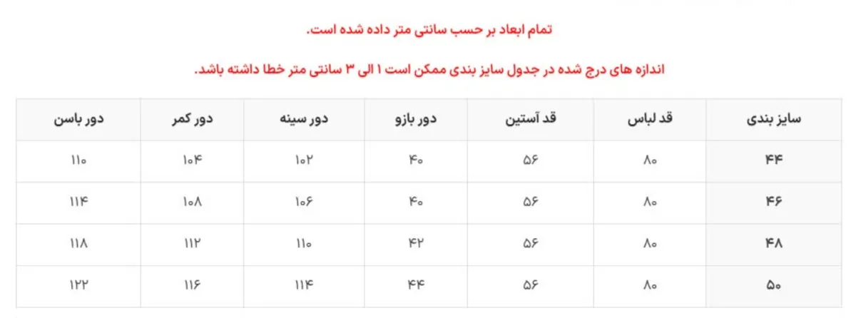 راستی برای انتخاب سایز مناسب خودت حتما جدول سایز بندی که همراه عکس محصول گذاشتم چک کن😉
