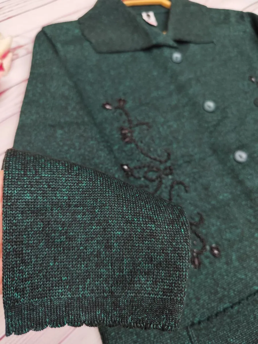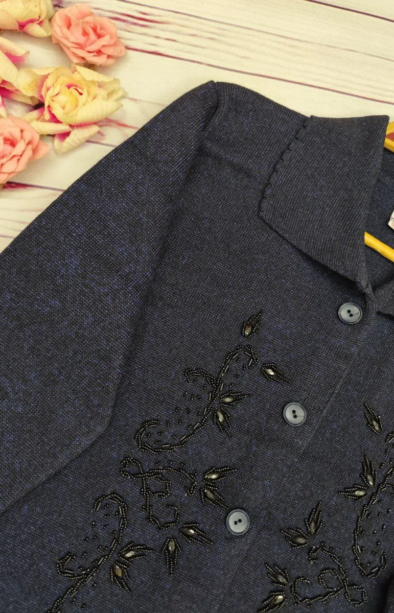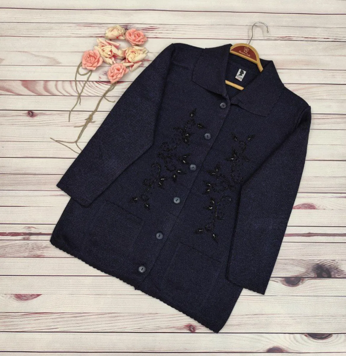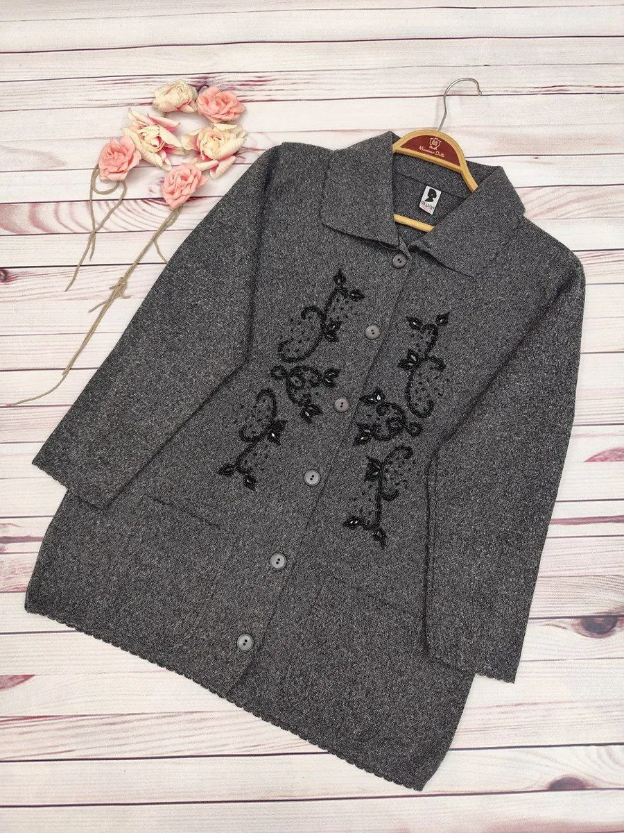 این ژاکت بهصورت جلو دکمهدار طراحی شده و رویه آن سنگدوزی ظریف دارد که ظاهر کار را خاصتر و شیکتر میکند.