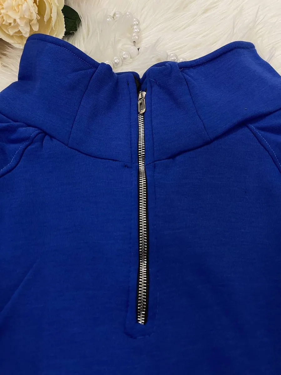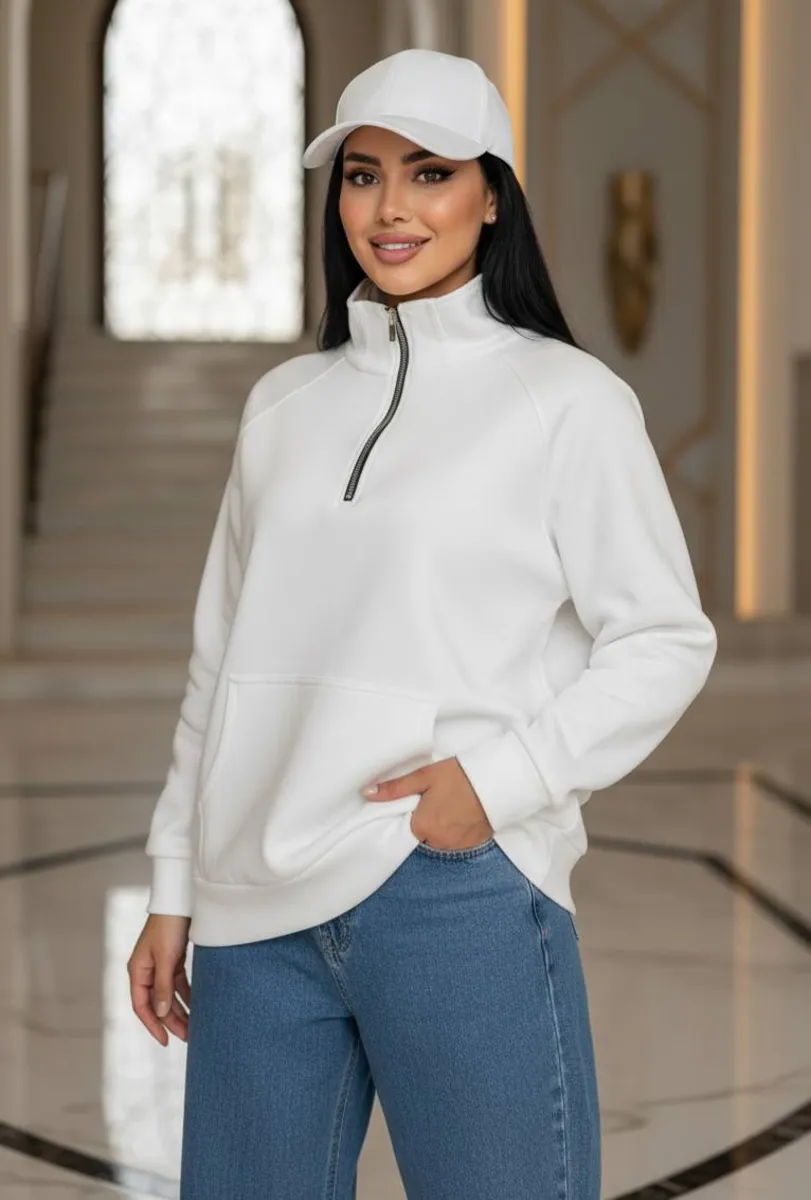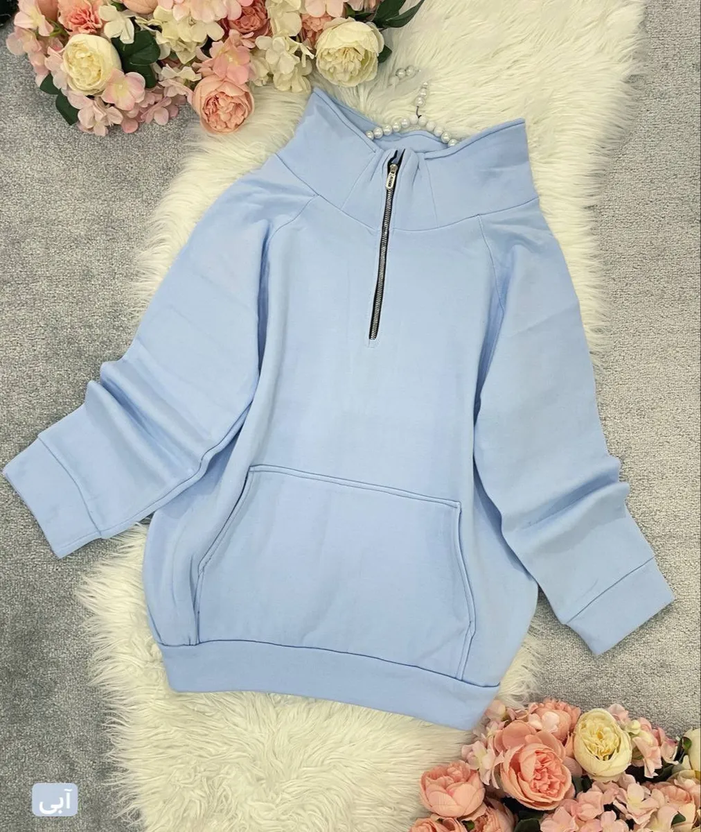 🍭 دورس نیم زیپ یقه آزاد داخل کرکی ساده✨