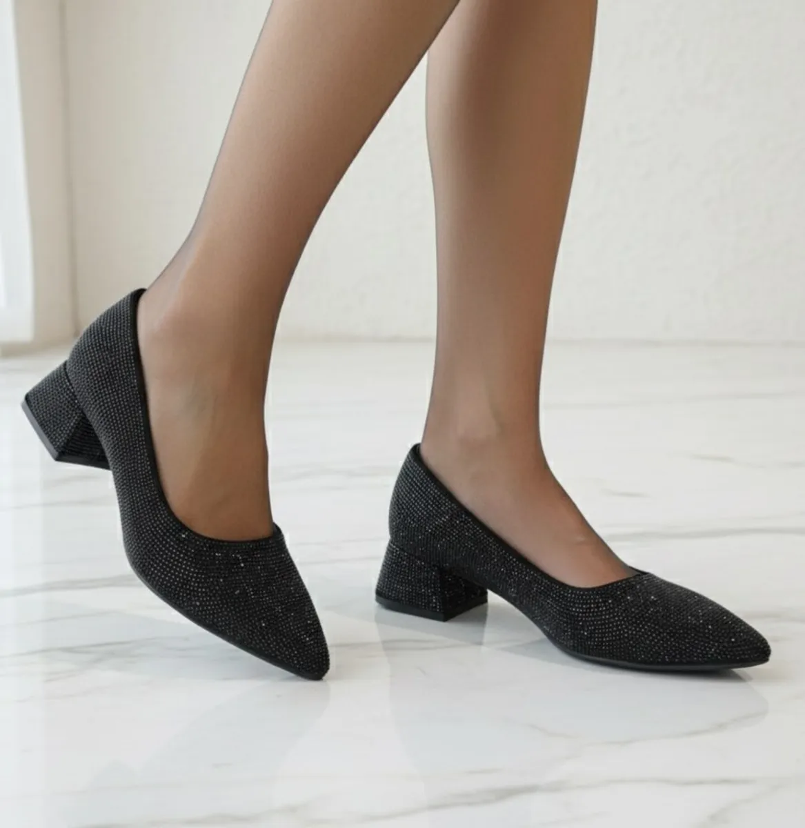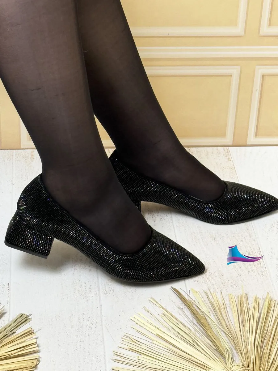 کفش پاشنهدار نگیندار مجلسی – کد 942 یک مدل شیک و پرطرفدار است که با طراحی ظریف نگینها، جلوهای کاملاً زنانه و مجلسی ایجاد میکند. این کفش با پاشنه 3 سانتیمتری طراحی شده که ظاهر رسمی و زیبا را با راحتی کامل ترکیب کرده و برای مهمانی، جشن، مراسم شب و استفاده طولانیمدت ایدهآل است.