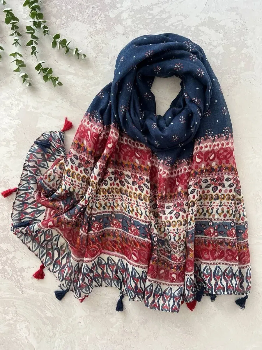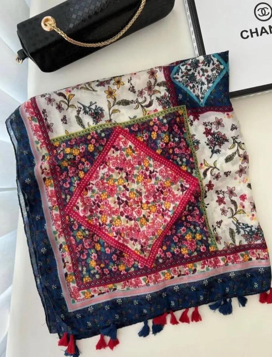 شال نخی وارداتی منگولهدار طرح سنتی با طراحی خاص و کیفیت بینظیر، انتخابی شیک و سبک برای استایل روزمره یا مهمانی است.