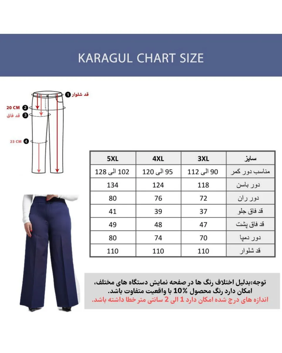 از جنس مازراتی درجهیک با ایستایی زیبا، لطافت مناسب و فرمدهی عالی، مخصوص خانمهایی که دنبال شلوار دمپا گشاد بگ در سایزهای بزرگ هستند.