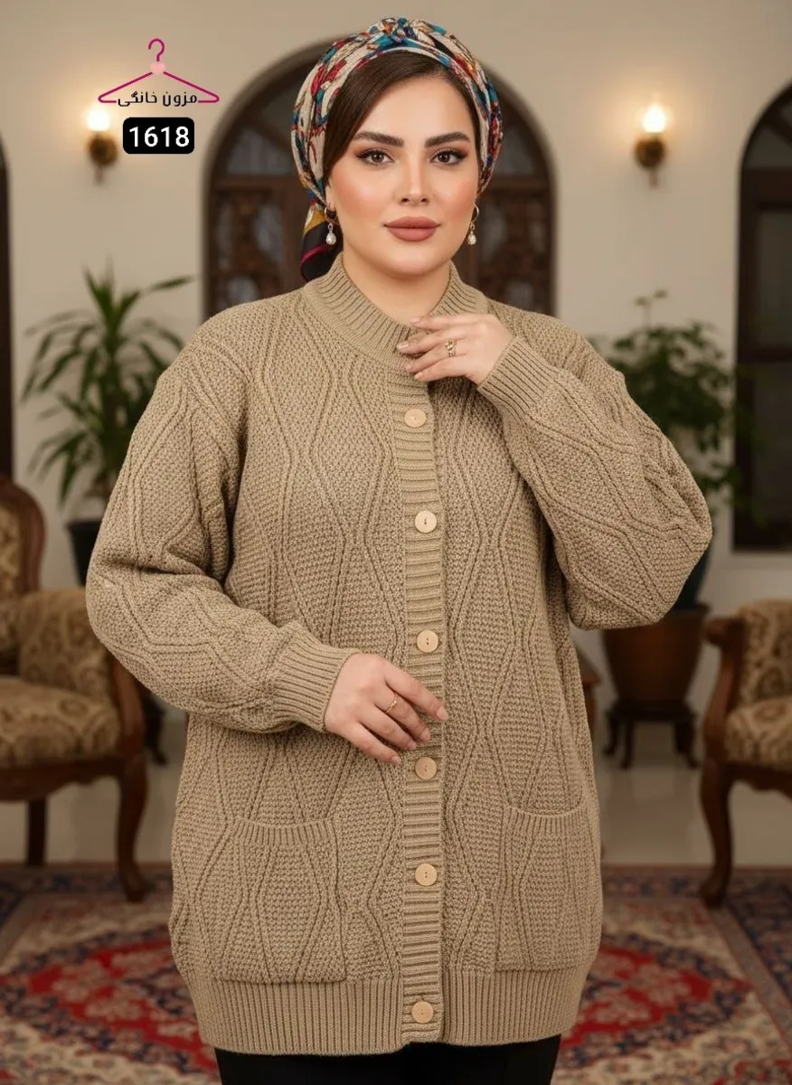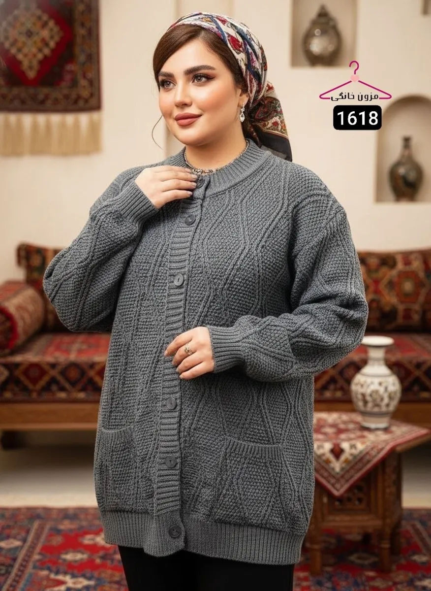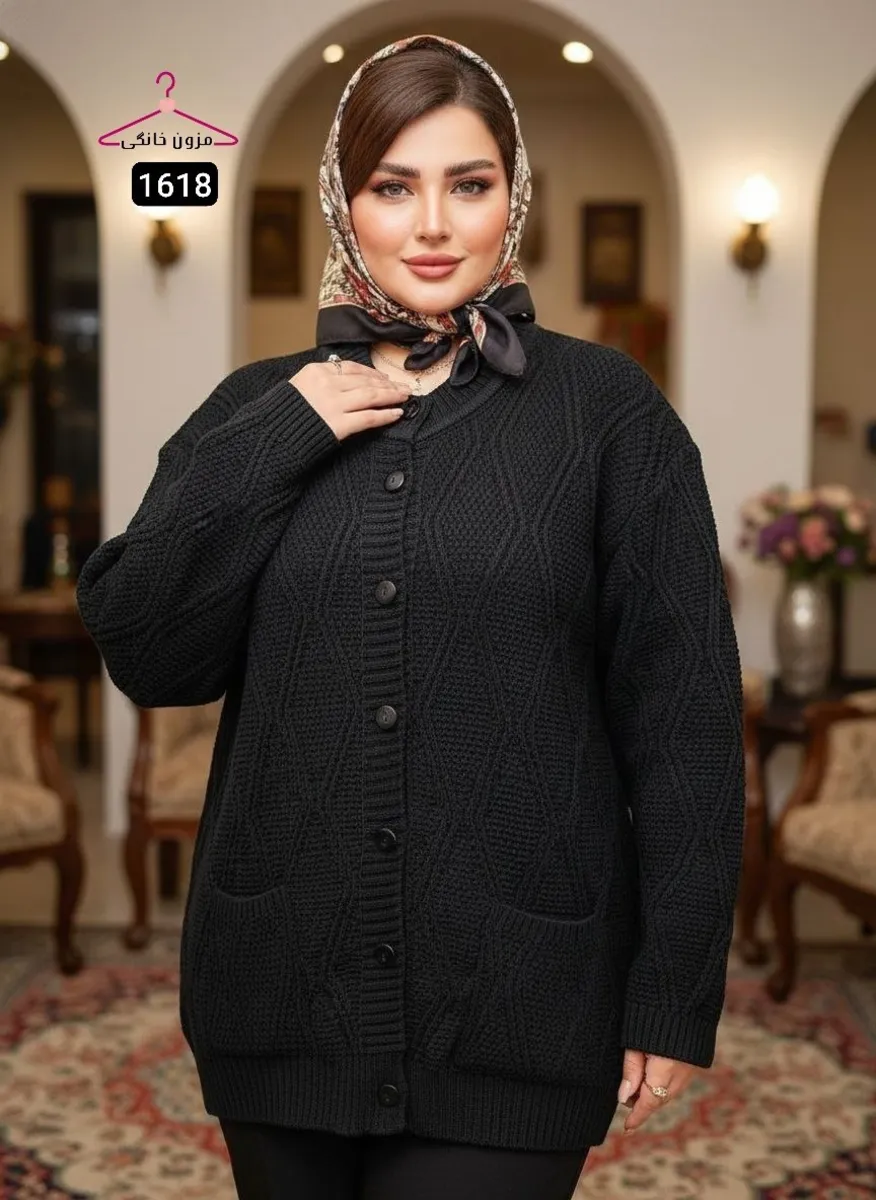 این مدل یکی از بهترین انتخابها برای خانمهای سایز بزرگ است که دنبال ژاکت راحت، شیک، گرم و کاملاً کشی هستند.