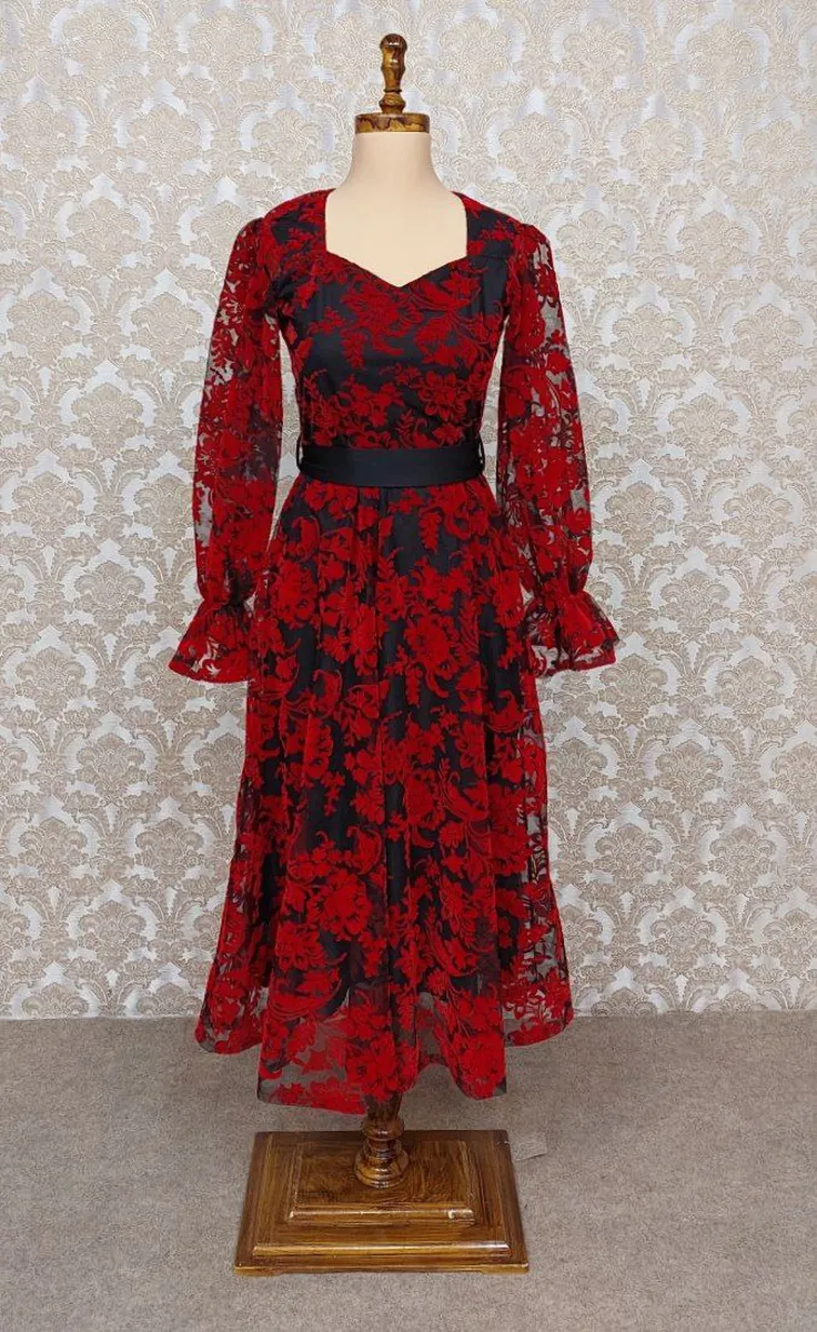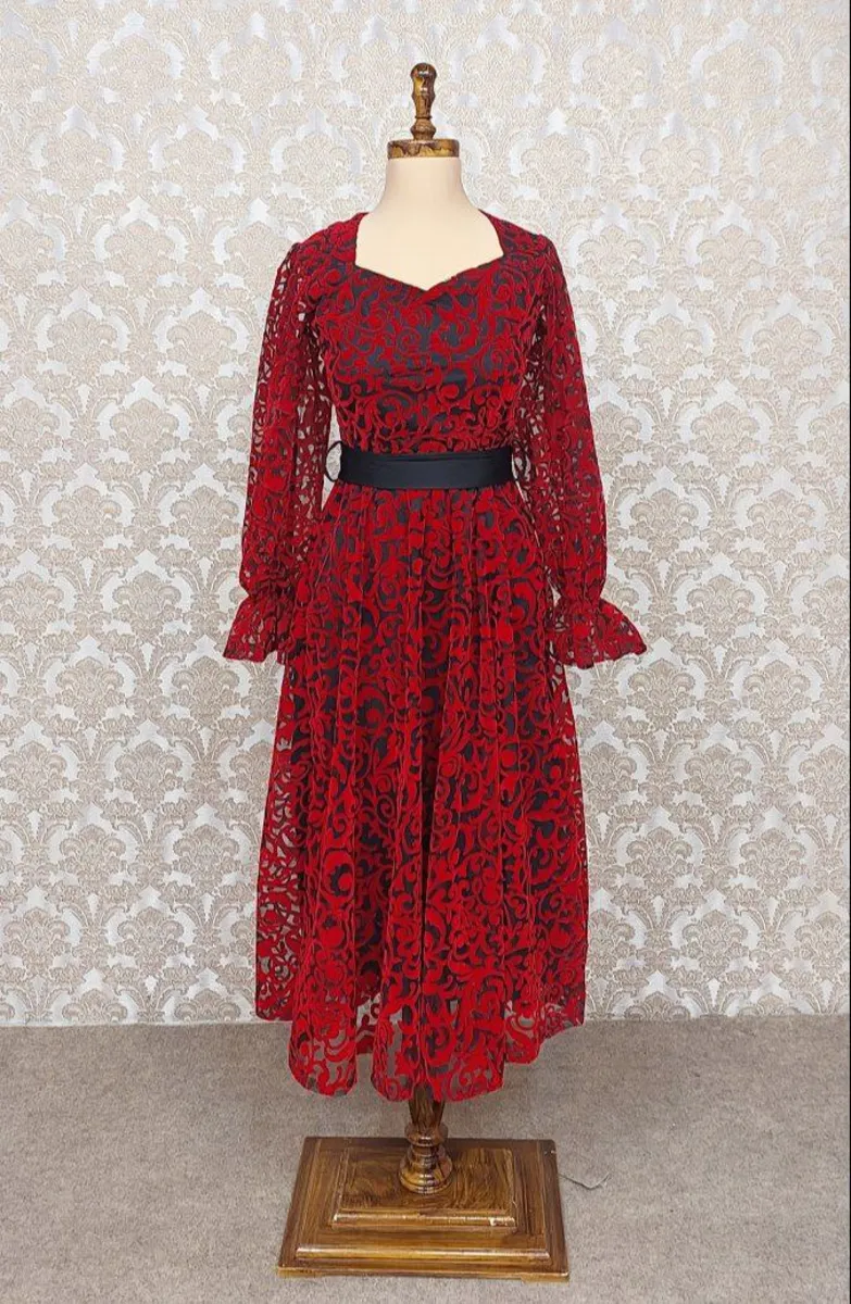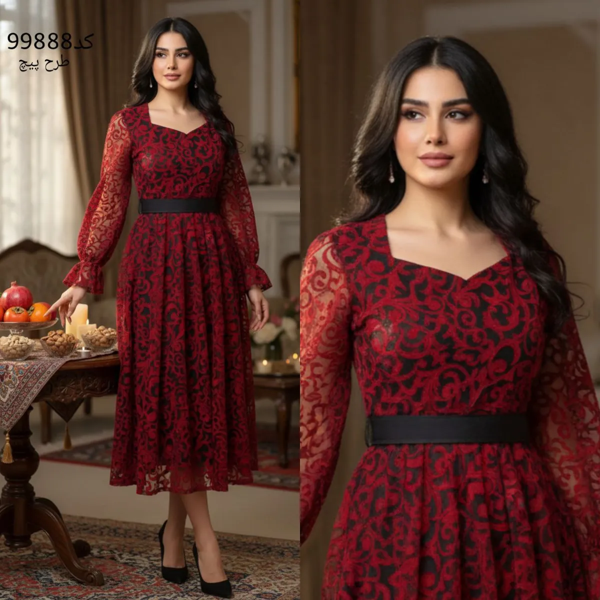 پیراهن میدی یلدایی زنانه با جنس فلوک مخمل و آستر پاناما، انتخابی شیک و چشمگیر برای مهمانیها و شب یلداست. این مدل با کمربند و زیپ مخفی طراحی شده تا ایستایی بهتری داشته باشد و فرم اندام را زیباتر نشان دهد. طرحهای جذاب پیچ و گل همراه با قد حدود 120 سانتیمتری، این تونیک/پیراهن را به گزینهای خاص و مجلسی تبدیل کرده است.