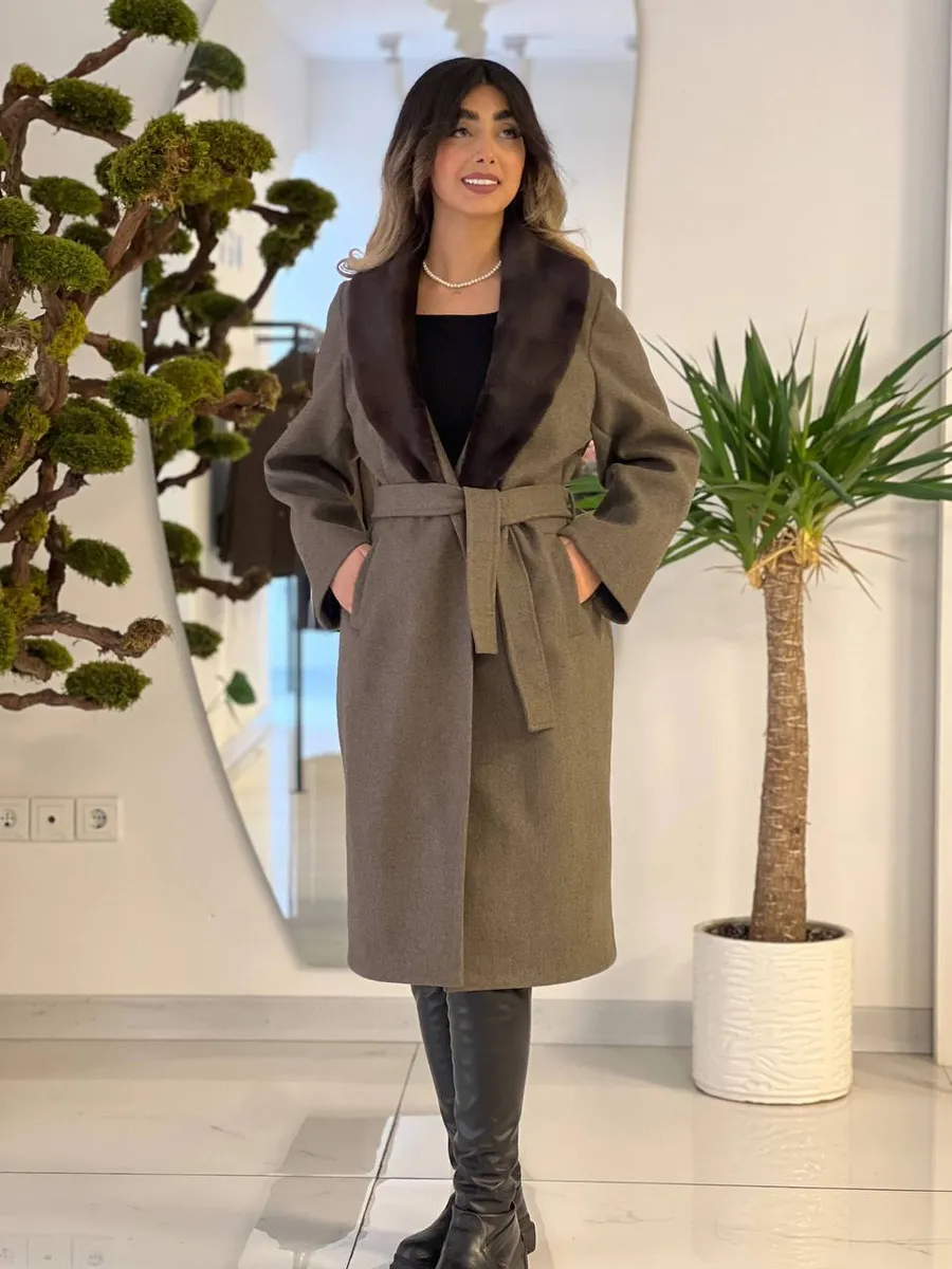 یقه با خز دالاس وارداتی طراحی شده که جلوهای شیک، خاص و زنانه به استایل میبخشد. قد 110 سانتیمتری این پالتو، ظاهری کشیده و جذاب ایجاد کرده و بهراحتی با بوت و استایلهای زمستانی ست میشود.