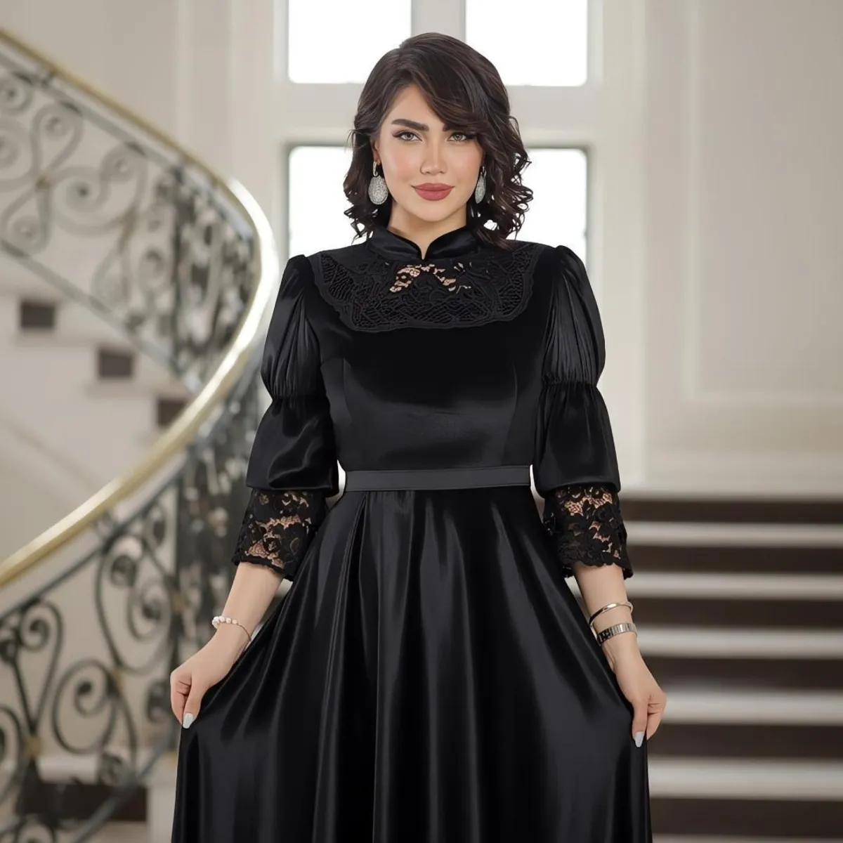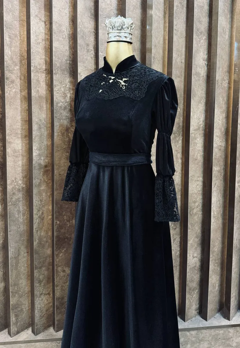 لباس مجلسی آرینا کد 166، انتخابی شیک و خاص برای خانمهایی است که به استایل پوشیده و مجلسی علاقه دارند. این لباس از پارچه مخمل باکیفیت بههمراه دانتل (گیپور) برجسته مخملی طراحی شده که جلوهای لوکس و بسیار چشمنواز به لباس میبخشد.