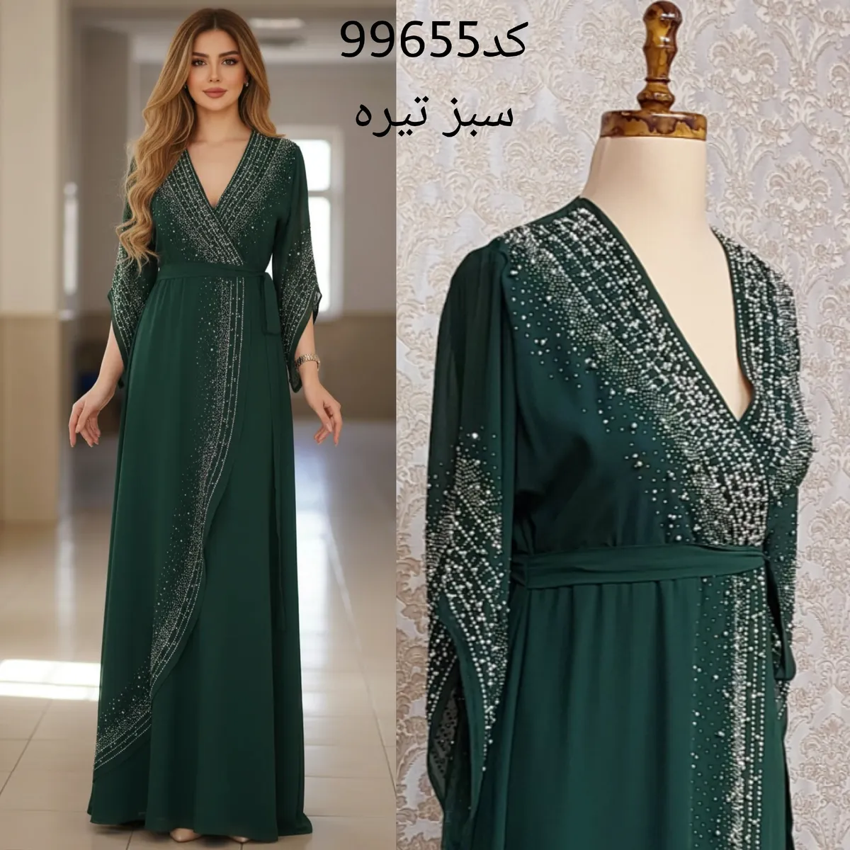 جنس : حریر سنگکاری شده (قد 150)(کمربند داره)(زیپ داره)