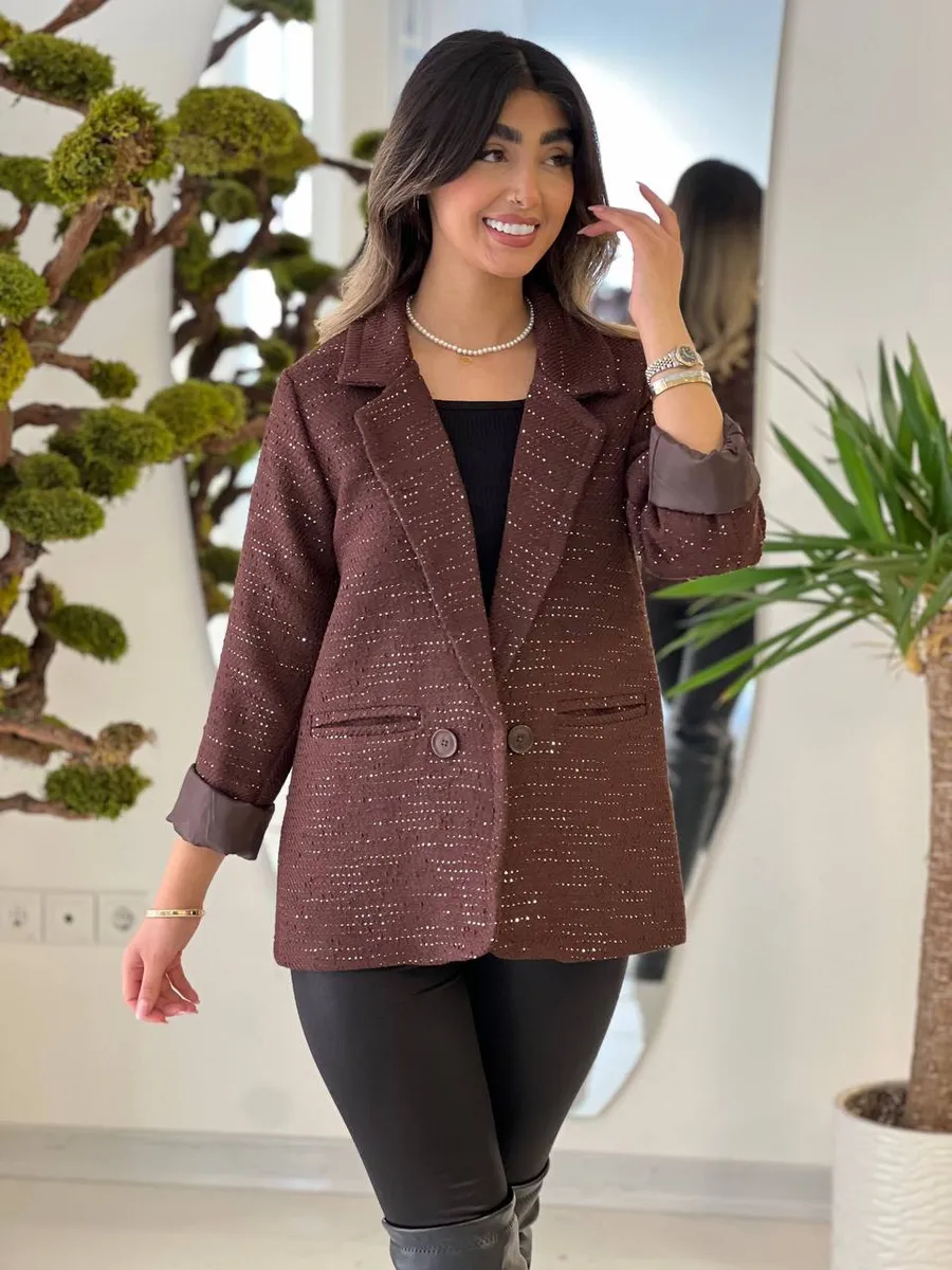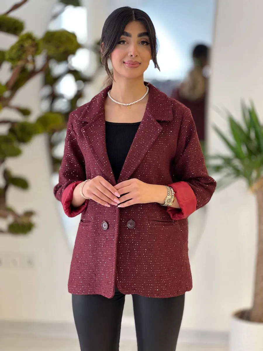 کت تک مجلسی زنانه پولکی با پارچه جوت پولکدوزی شده، انتخابی خاص و چشمنواز برای استایلهای رسمی و مجلسی است. آسترکشی همرنگ در کنار لاییکشی پرشین در پیش و پشت کار، ایستایی بسیار شیک و تنخور مزونی به کت میبخشد. طراحی پشت دکمهدار جلوهای متفاوت و ظریف ایجاد کرده و وجود جیبهای کاربردی، علاوه بر زیبایی، کارایی لباس را افزایش میدهد. قد استاندارد این کت آن را برای ست شدن با شلوار، دامن یا لباس مجلسی بسیار مناسب کرده است. این مدل در رنگبندی متنوع، انتخابی ایدهآل برای مهمانیها و مراسمهای خاص میباشد.