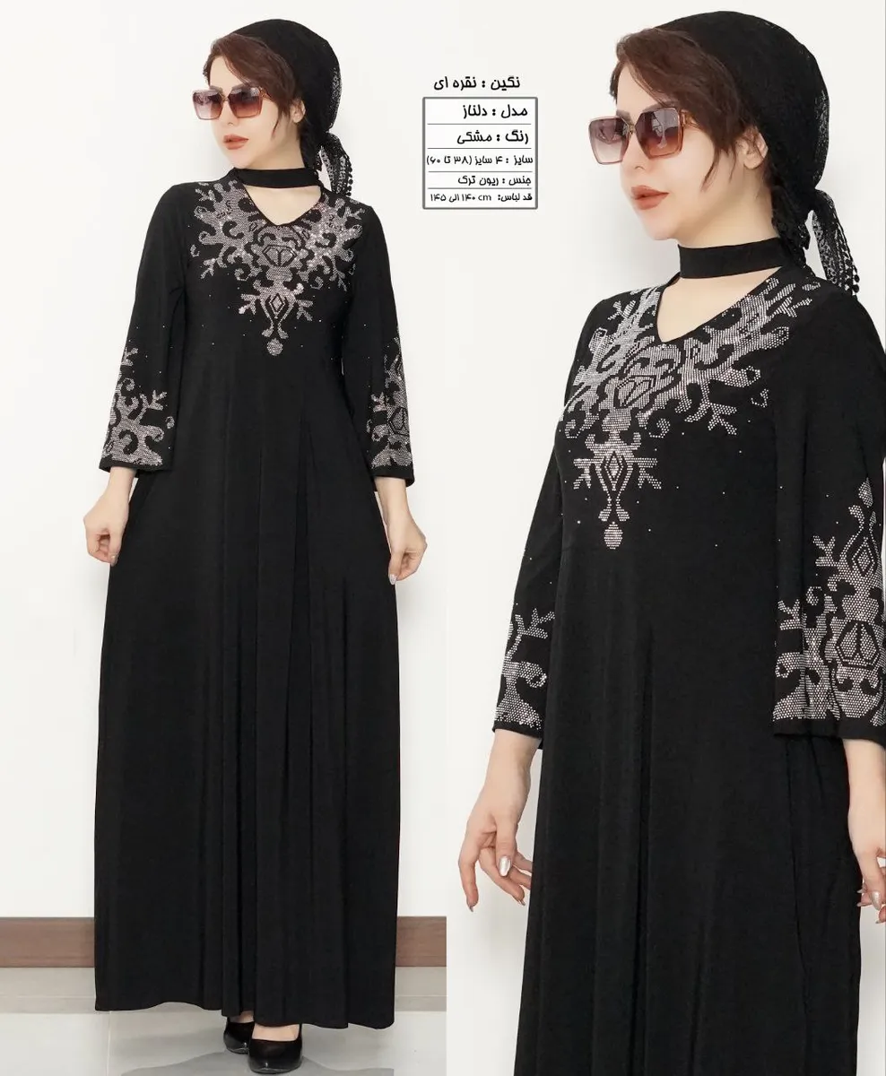 لباس مجلسی دلناز با طراحی ساده و در عین حال شیک، انتخابی ایدهآل برای خانمهایی است که به استایل مینیمال اما درخشان علاقه دارند. این مدل از ریون ترک باکیفیت تهیه شده که با بافت لطیف و خوشفرم، تنخوری راحت و مرتب روی اندام ایجاد میکند. استفاده از نگینهای براق روی لباس جلوهای ظریف و مجلسی به آن بخشیده بدون اینکه ظاهر کار شلوغ شود. زیپ مخفی پشت لباس، پوشیدن آسان و نمایی تمیز را فراهم کرده و قد حدودی 140 تا 143 سانتیمتر، آن را به گزینهای مناسب برای خانمهای سایز بزرگ تبدیل میکند. رنگبندی مشکی با نگین نقرهای یا مشکی، این مدل را کاربردی و مناسب انواع مراسم رسمی، مهمانیها و دورهمیهای مجلسی کرده است. ارسال فوری نیز از مزیتهای مهم این محصول به شمار میرود.