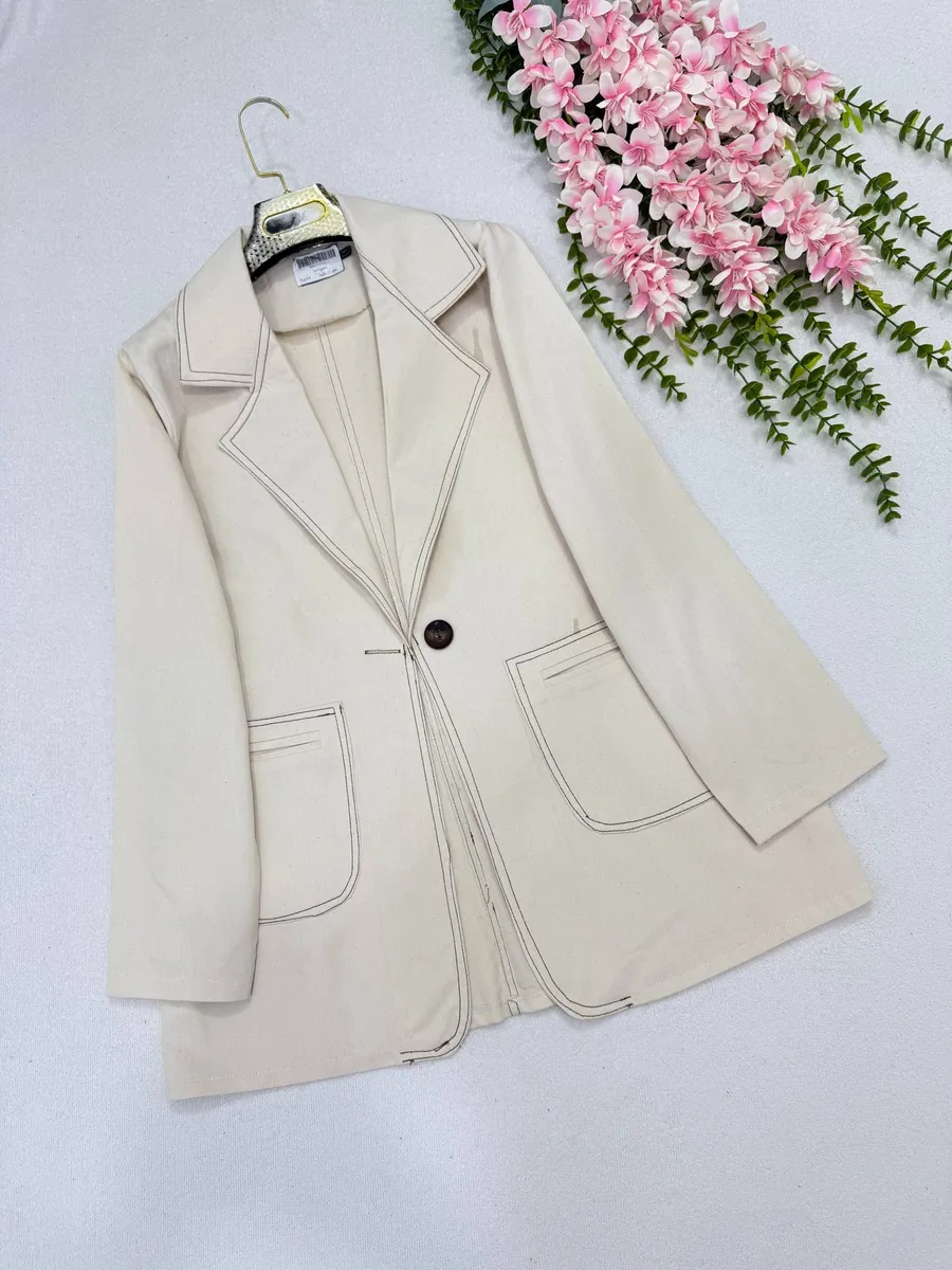 کت تک پاییزه زنانه مدل سمین انتخابی کاربردی و شیک برای استایلهای روزمره و نیمهرسمی پاییزی است. این کت از کتان درجه یک تهیه شده که علاوه بر دوام بالا، ایستایی بسیار خوبی روی بدن دارد و فرم مرتب خود را در طول روز حفظ میکند. طراحی ساده اما شیک آن باعث میشود بهراحتی با شلوار پارچهای، جین یا دامن ست شود.
