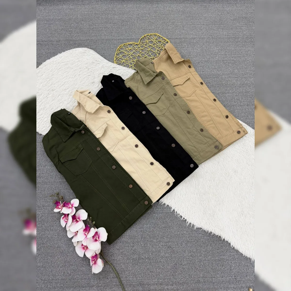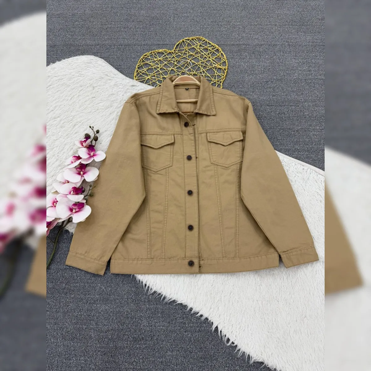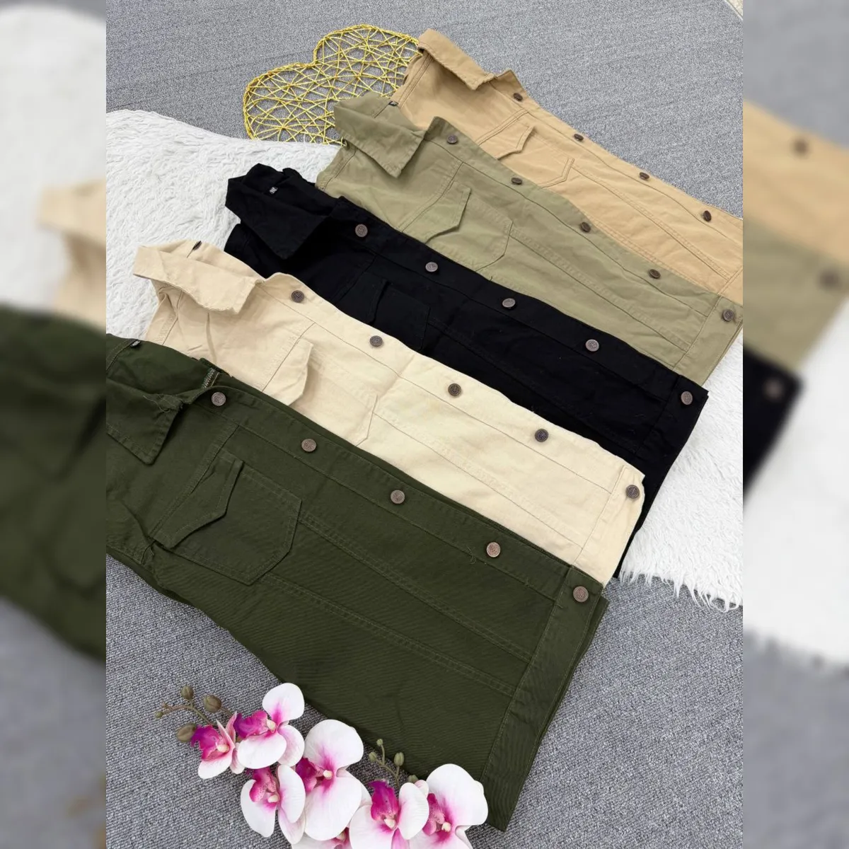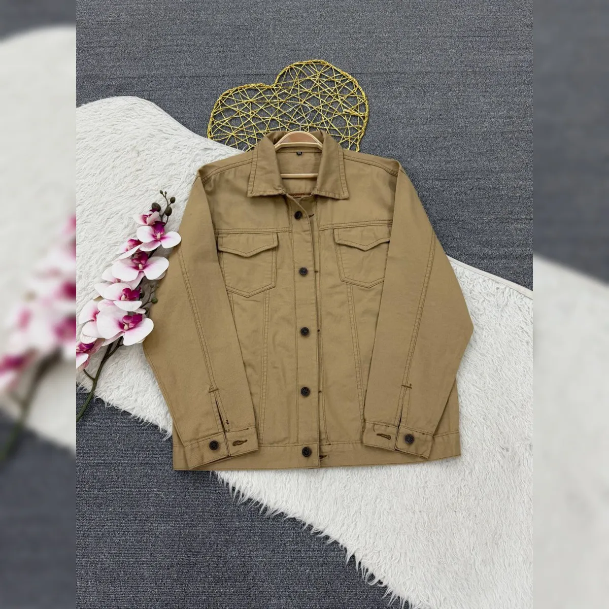 قد 65✅️دورسینه سایز 1: 100✅️ دورباسن سایز 1: 100✅️دور بازو سایز 1: 42✅️ دورسینه سایز 2: حدود 112✅️ دور باسن حدود 112✅️دور بازو 44✅️ قد آستین از یقه 73✅️ دو جیب کاربردی✅️ دکمه های جلوی کار باز میشود✅️ پارچه گرم بالا با کیفیت عالی کتان جین مشابه جین اصلی میباشد✅️