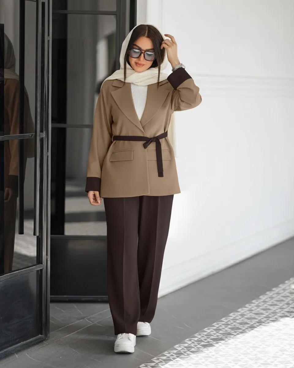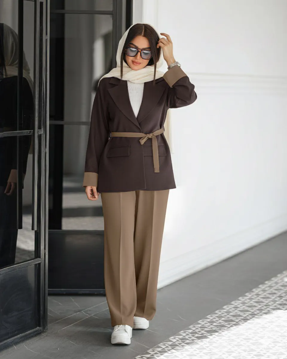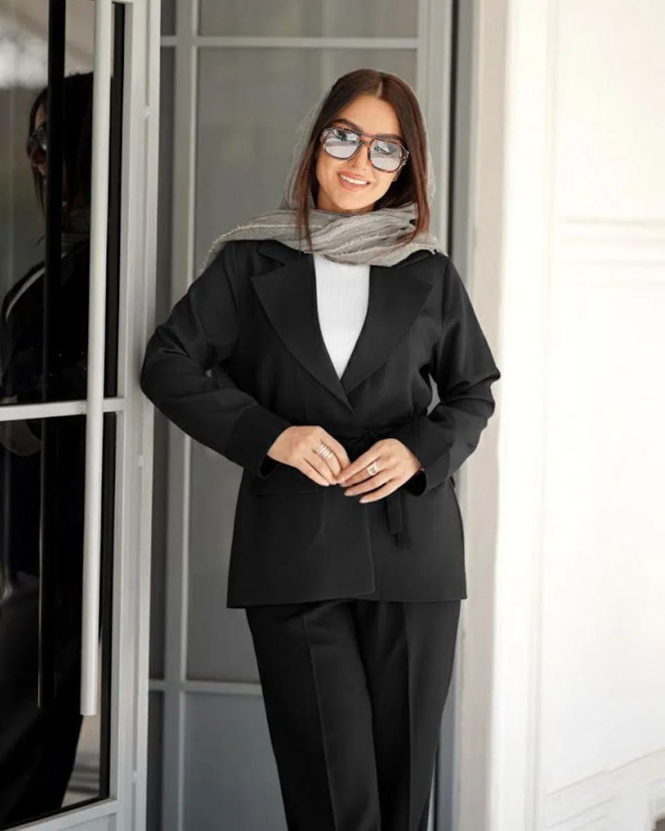 کت و شلوار اسپرت زنانه مدل صبا از کالکشن پاییزه 1404، انتخابی شیک، کاربردی و بهروز برای استایل روزمره، دانشجویی و محل کار است. این ست از پارچه بزیاق درجه یک دوخته شده که علاوه بر لطافت، ایستایی بسیار مناسبی دارد و حس راحتی بالایی هنگام پوشیدن ایجاد میکند.