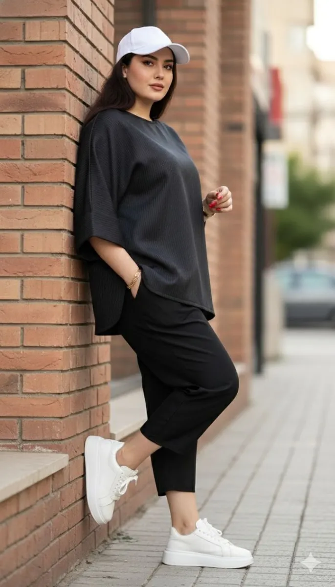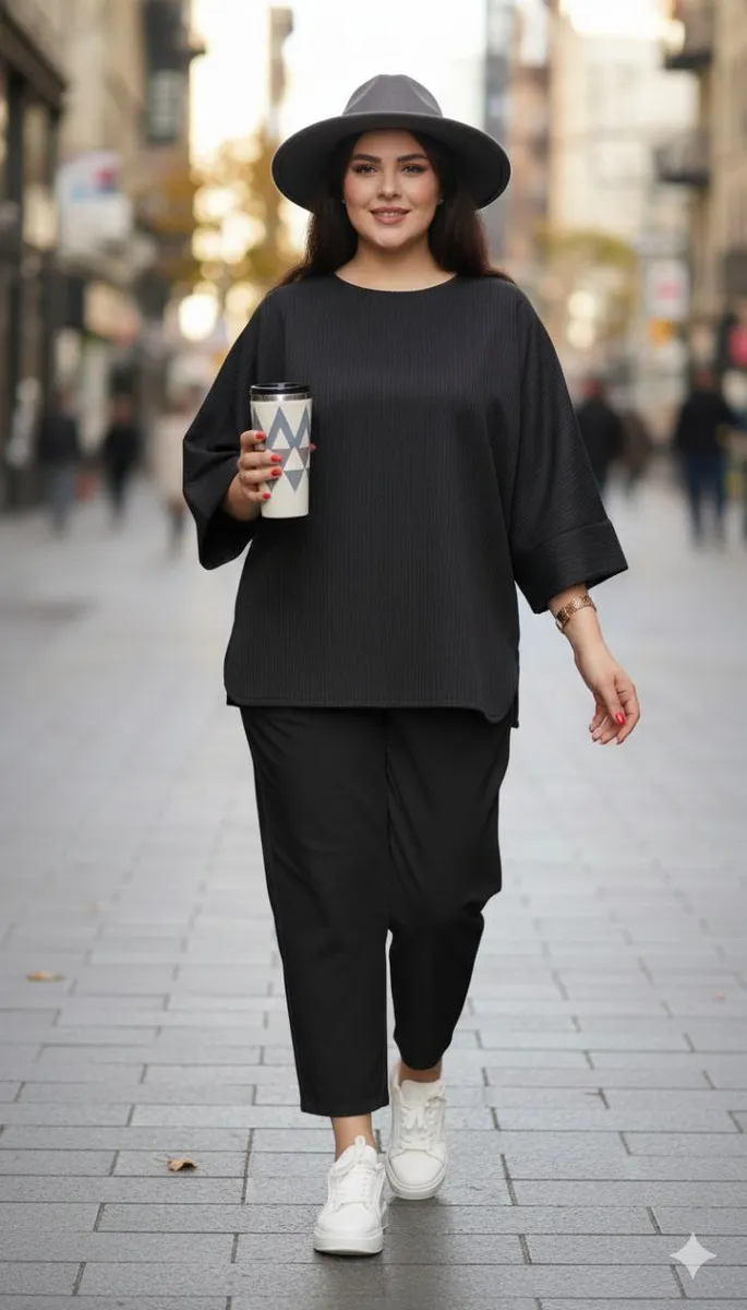 شلوار این ست بهصورت کامل کمرکش طراحی شده و با داشتن دو جیب کاربردی، راحتی حداکثری را در طول روز فراهم میکند. فرم گشاد و آزاد لباس باعث شده این مدل گزینهای ایدهآل برای سایزهای بزرگ باشد، بدون اینکه از شیکبودن استایل کم کند.