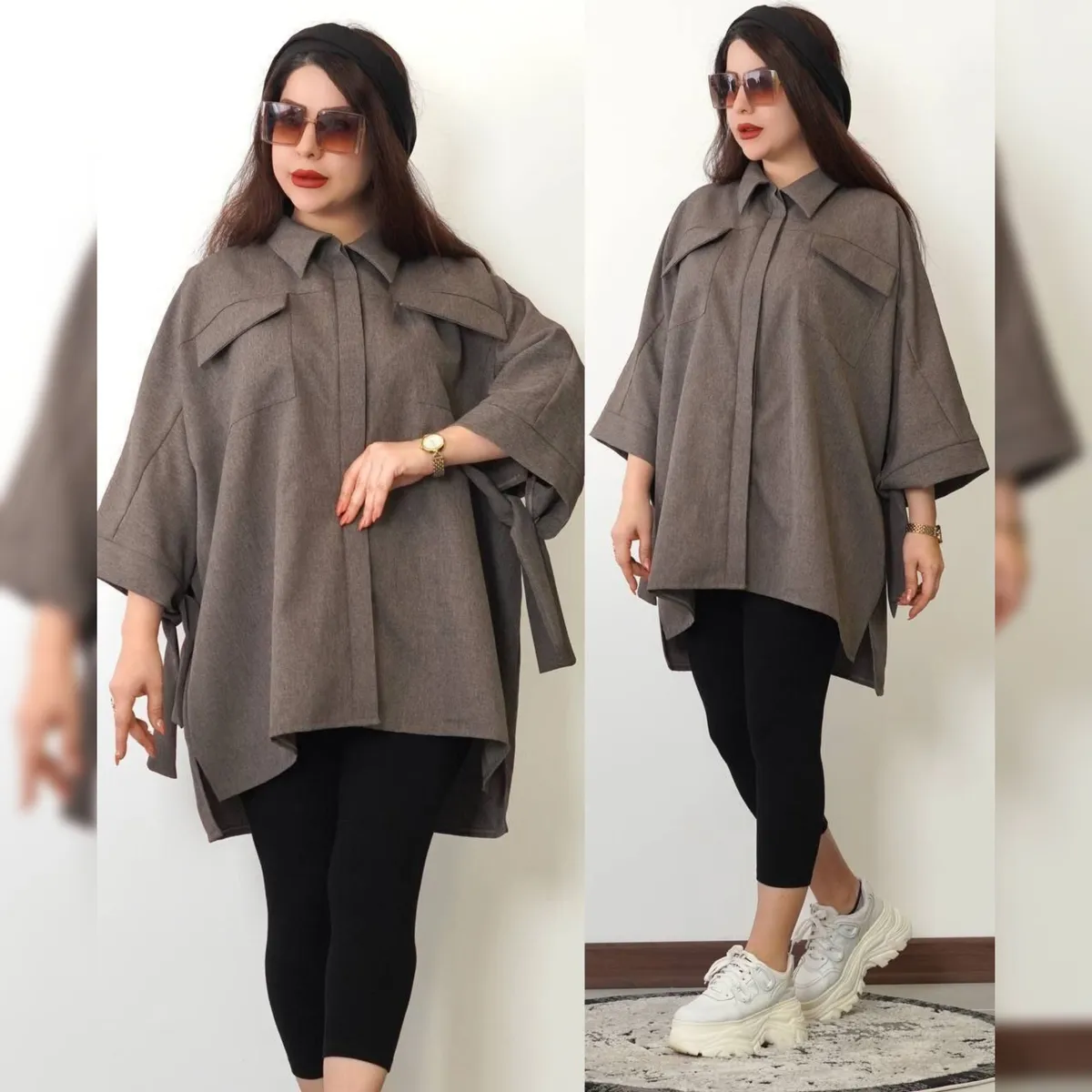 فرم فریسایز واقعی (مناسب سایز 38 تا 60) باعث شده این مانتو گزینهای ایدهآل برای سایزهای بزرگ باشد و بدون جذب یا فشار، تنخوری آزاد و مرتب ارائه دهد.