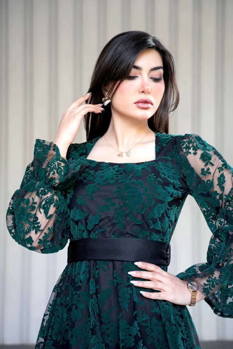 لباس مجلسی میدی دخترانه مدل یلدا با طراحی ظریف و زنانه، انتخابی شیک برای مهمانیها، تولد و مراسم نیمهرسمی است. این مدل از پارچه مخمل فلوک باکیفیت تهیه شده که بافت لطیف و جلوهای لوکس دارد و روی تن بسیار خوشفرم مینشیند.