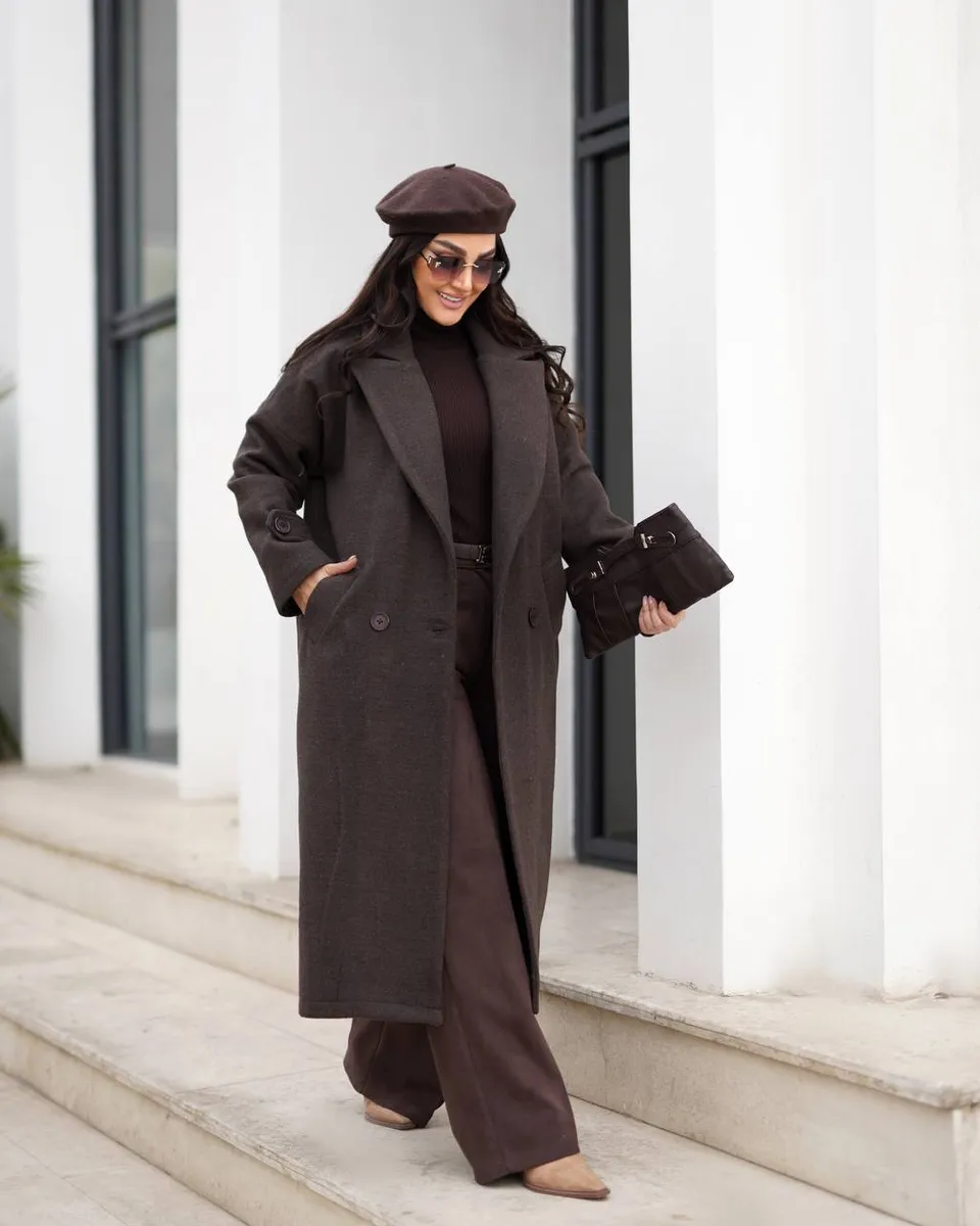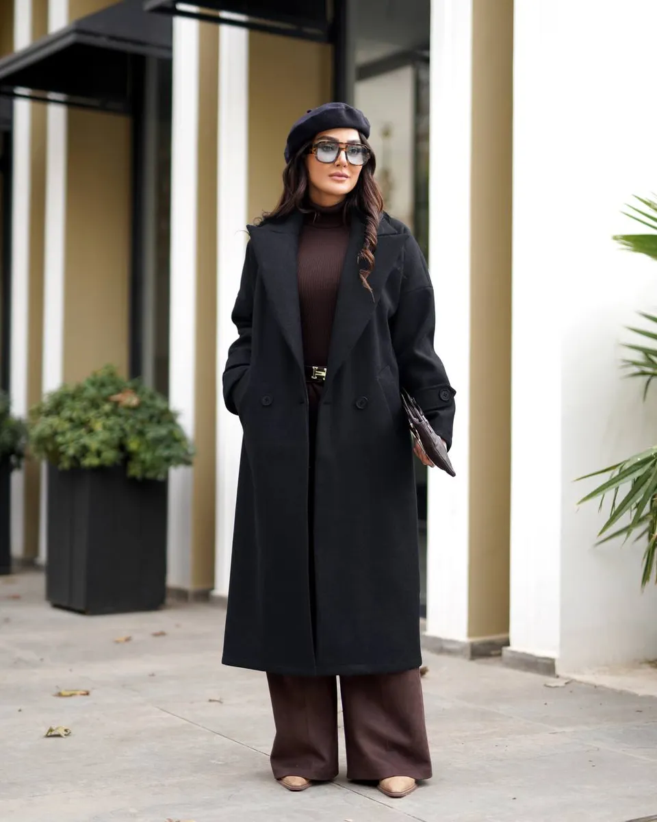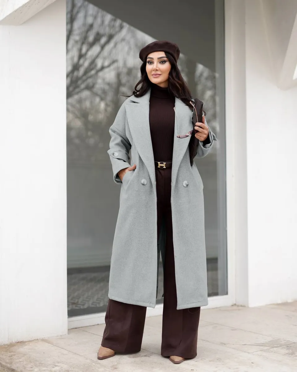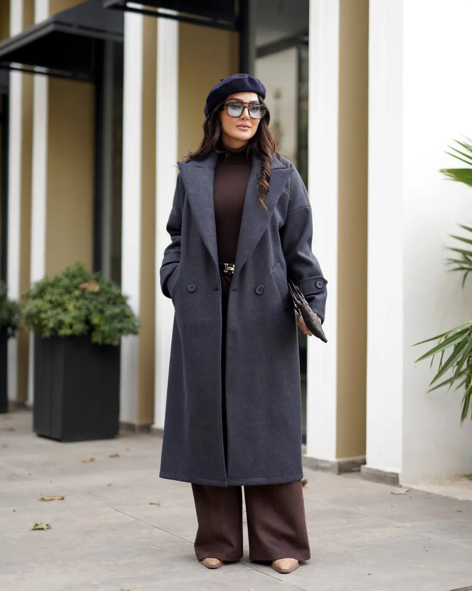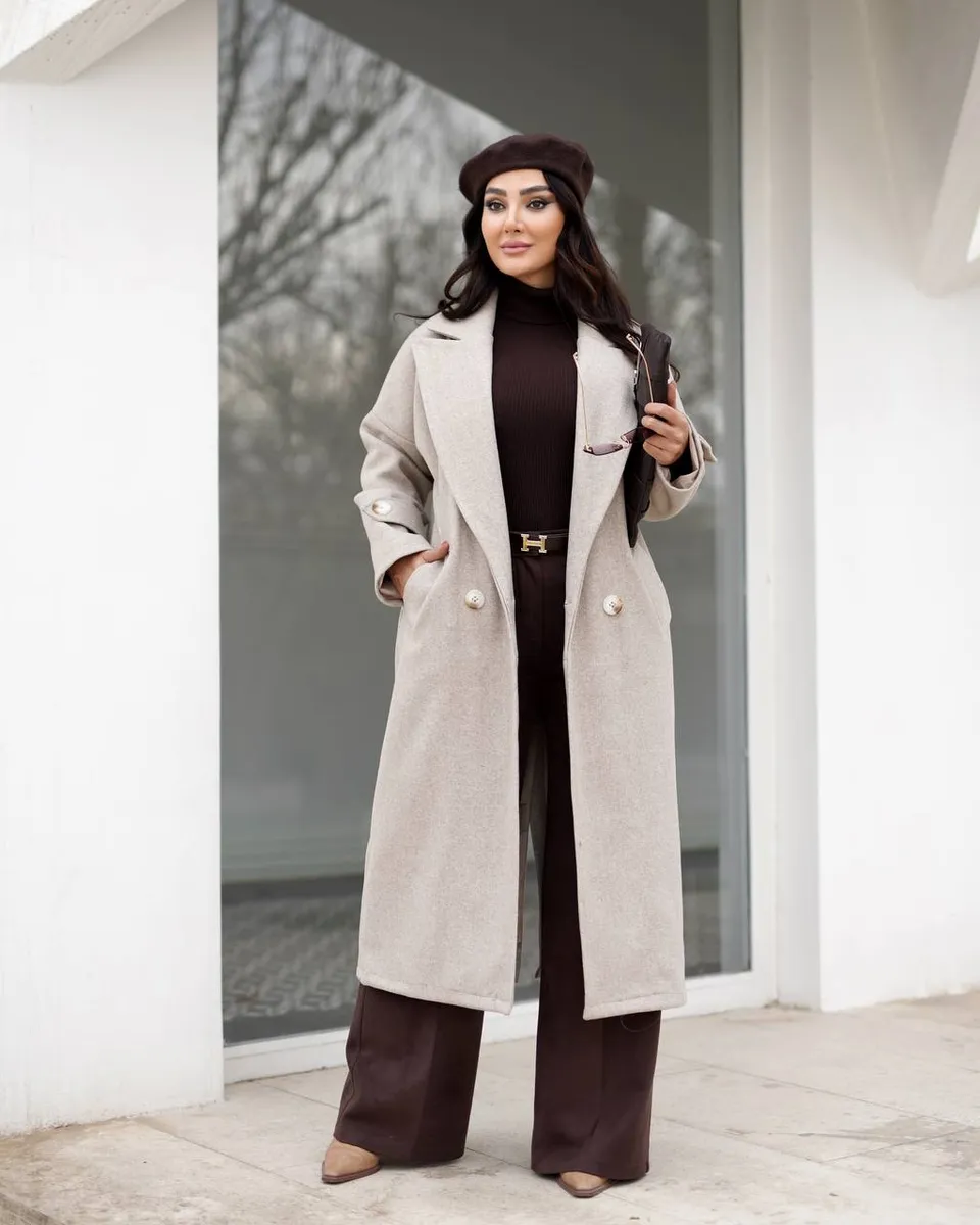 فرم اوورسایز این پالتو، تنخوری راحت و مدرن ایجاد کرده و بهخوبی برای سایزهای 36 تا 50 مناسب است. قد بلند 118 سانتیمتری و دور سینه 114 سانتیمتر ظاهری کشیده و شیک به استایل میدهد و آن را برای استفاده روزمره، محل کار و استایلهای نیمهرسمی بسیار کاربردی میکند.