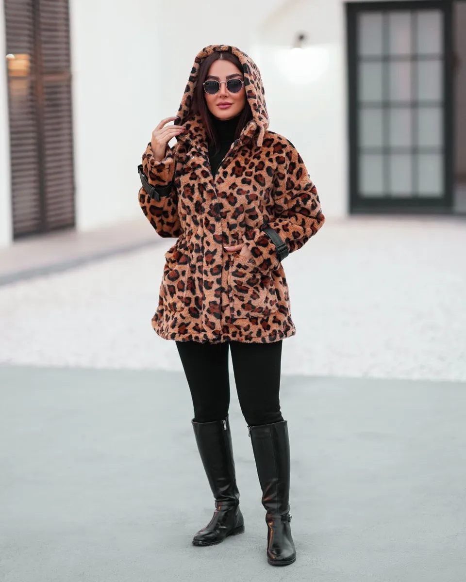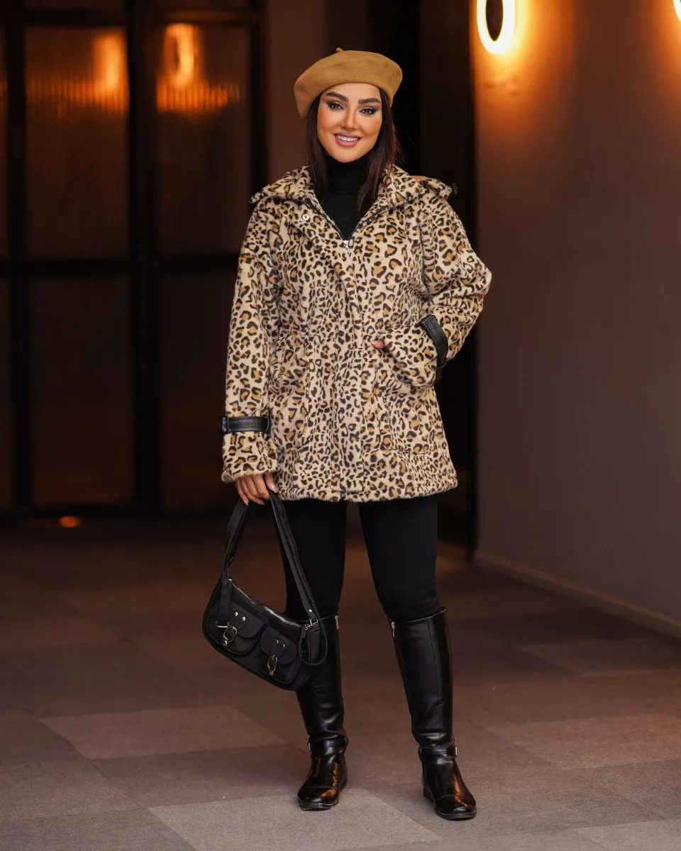 ✂️ مدل پالتو پوست کمر گتر کلاهدار