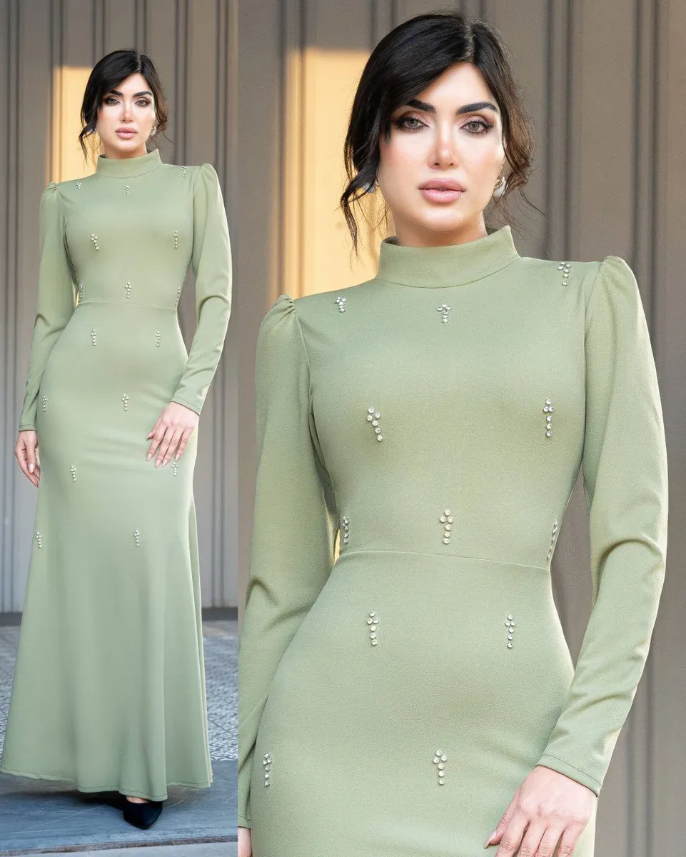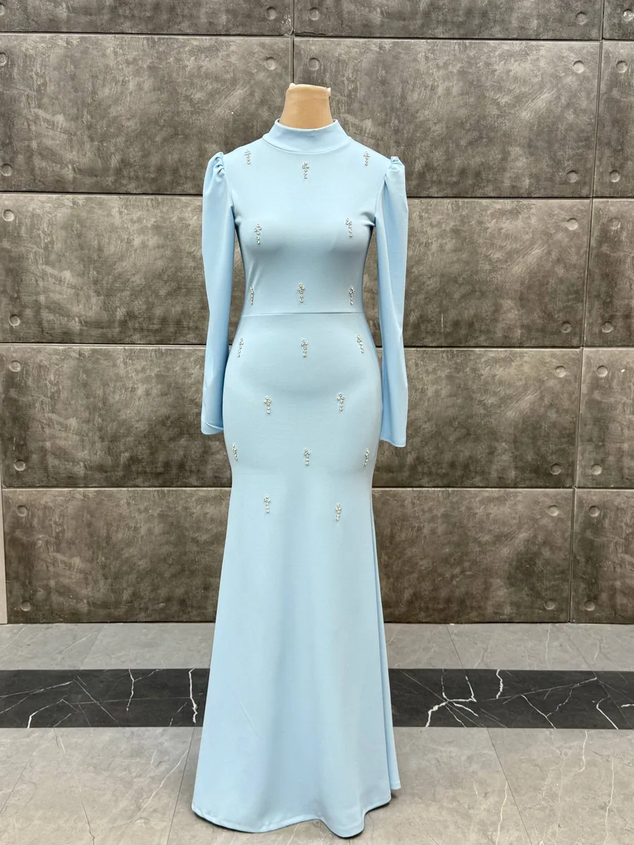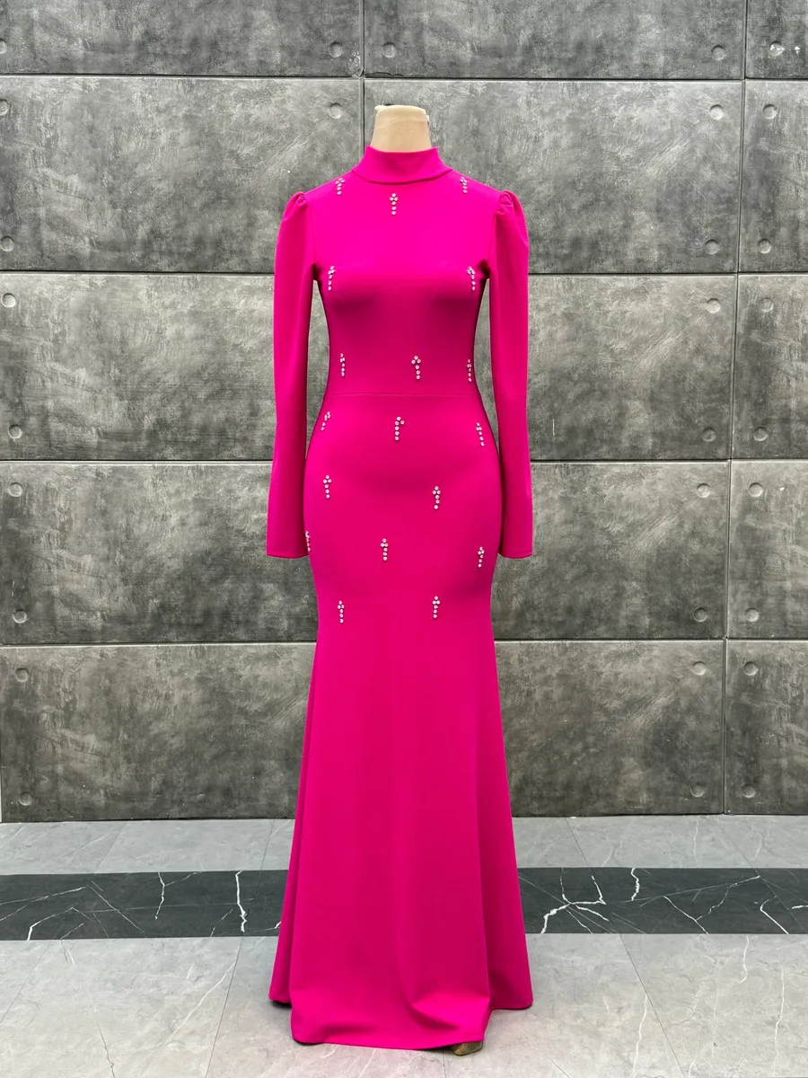 طراحی یقه ایستاده ظاهر لباس را رسمیتر و خاصتر کرده و در کنار فرم ساده و خوشدوخت، جلوهای کاملاً شیک و وقارمند به استایل میبخشد. قد حدود 160 سانتیمتر (ماکسی) باعث کشیدهتر دیده شدن اندام شده و این لباس را به گزینهای مناسب برای مراسمی مانند عروسی، نامزدی، جشن شب و مهمانیهای رسمی تبدیل میکند.