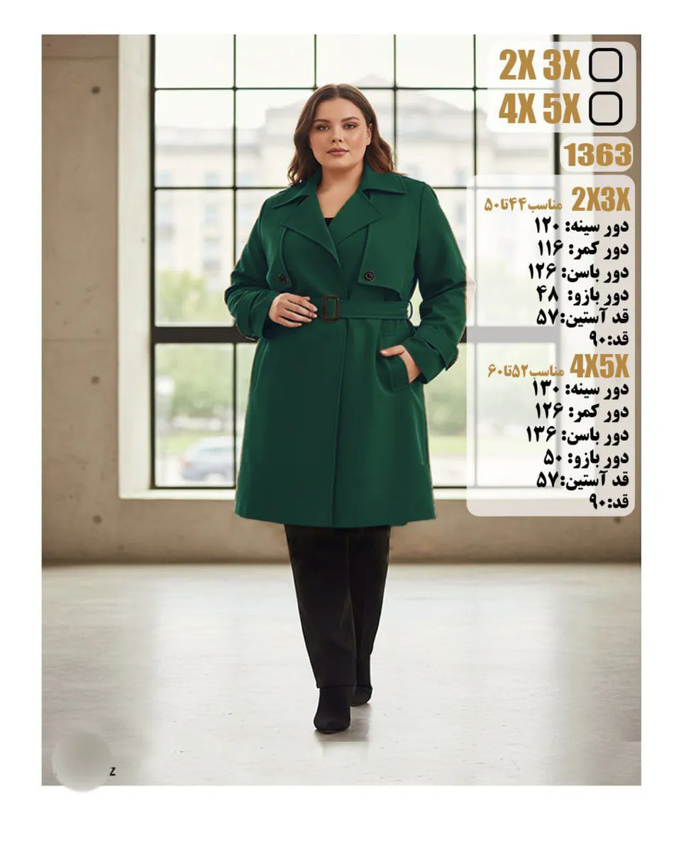این مدل در دو رنگ پرطرفدار سبز یشمی و مشکی عرضه شده و دارای دو سایزبندی مناسب سایز 44 تا 60 است که برای اندامهای سایز بزرگ کاملاً استاندارد و راحت طراحی شده است.