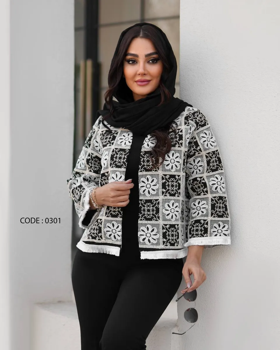 این کت در دو رنگ کلاسیک و پرطرفدار مشکی و کرم با جزییات سفید/بژ عرضه شده و با توجه به سایزبندی استاندارد (1 و 2 – مناسب سایز 40 تا 48) انتخابی ایدهآل برای اندامهای مختلف محسوب میشود. قد کوتاه و طراحی مجلسی آن باعث میشود بهراحتی با شلوار پارچهای، جین، دامن یا حتی ستهای رسمی نوروزی ترکیب شود.