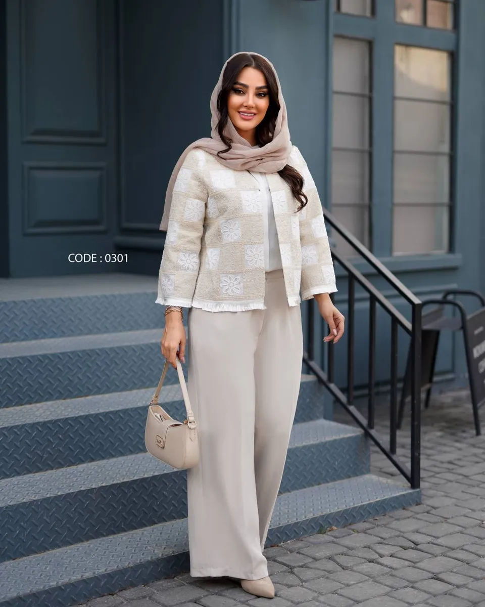 کت مجلسی زنانه طرح اسلیمی تلفیقی هنرمندانه از اصالت ایرانی و طراحی مدرن است؛ انتخابی خاص برای بانوانی که در استایل نوروزی خود بهدنبال تمایز، ظرافت و وقار هستند. این مدل بهعنوان یکی از پرفروشترین آیتمهای کالکشن نوروز 1405 طراحی شده و جلوهای لوکس و متفاوت به استایل عیدانه شما میبخشد.