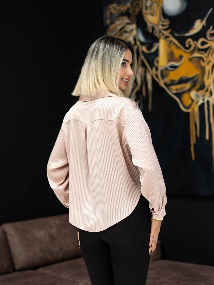 جنس کار از **ساتن جولیا ریلی جدید** انتخاب شده؛ پارچهای لطیف، خوشریزش و با براقیت ظریف که جلوهای لوکس و متفاوت به شومیز میده. این جنس هم برای استایلهای روزمره شیک عالیه، هم برای مهمونیها و دورهمیهایی که میخوای بدرخشی.