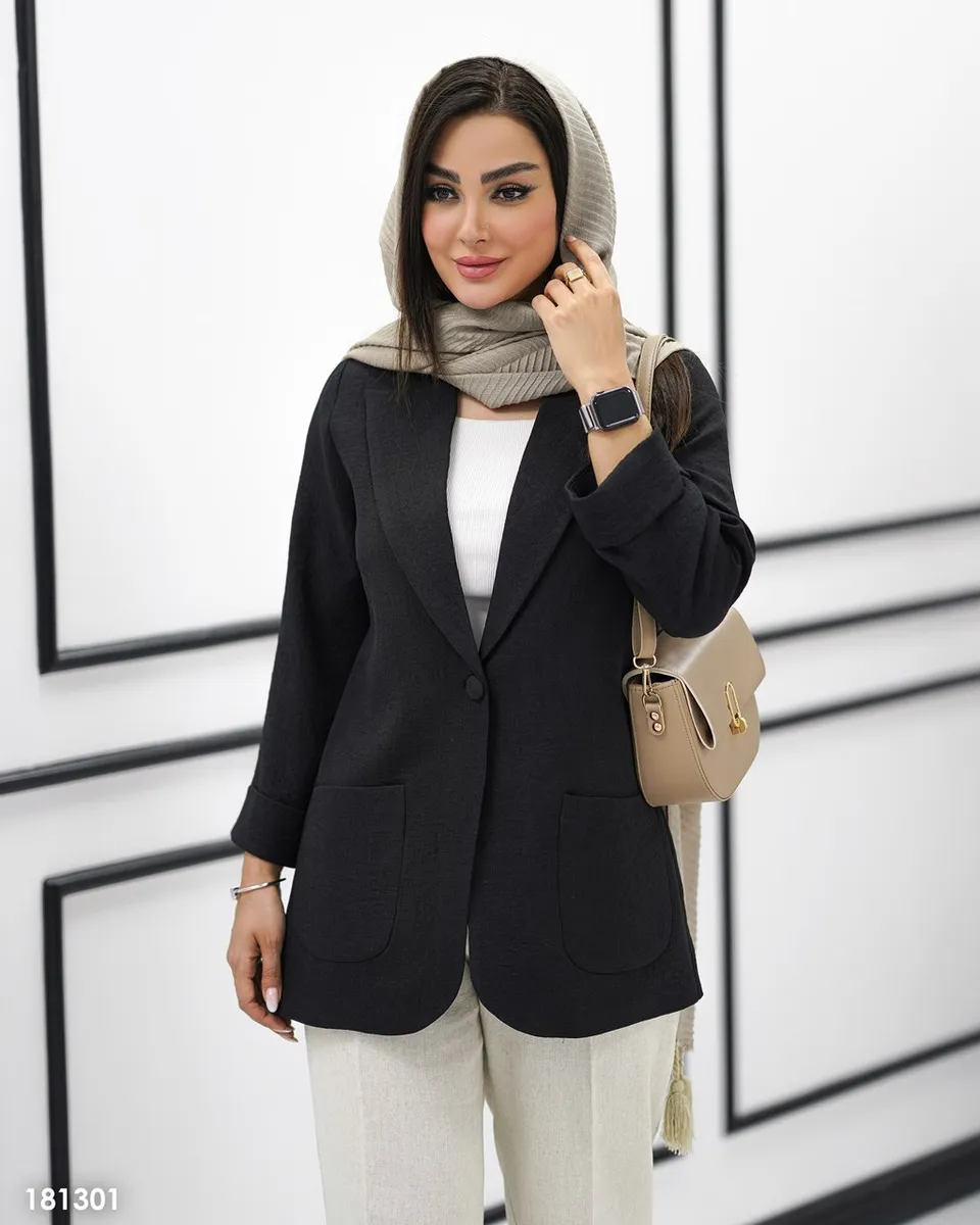 پارچه لینن دوک باکیفیت، علاوه بر ظاهر طبیعی و شیک، ایستایی بسیار خوبی روی تن دارد و به کمک **لایی پرشین در پیشکار**، فرم کت کاملاً منظم و حرفهای حفظ میشود. طراحی **تکدکمه** جلوهای مینیمال و ترند به این مدل بخشیده و باعث کشیدهتر دیده شدن بالاتنه میشود.